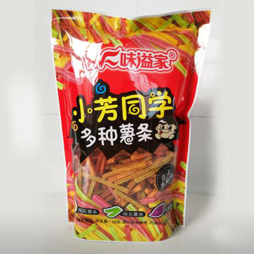選用優(yōu)質(zhì)的雜糧與小麥粉精制而成,主要成分以豌豆粉、紫薯粉、南瓜粉為主,小麥粉為輔,不添加色素,搭配以香草的清香、番茄的酸甜,口感香酥,回味持久。靚麗的立體包裝,充氮氣保鮮,絕對不一樣的視覺沖擊。