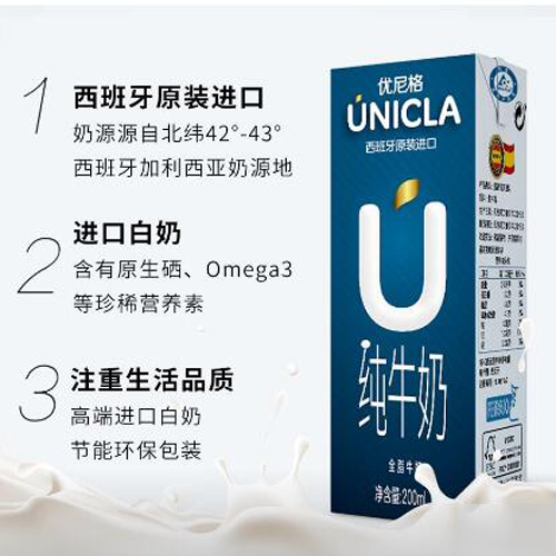 優(yōu)尼格西班牙進(jìn)口全脂純牛奶Unicla