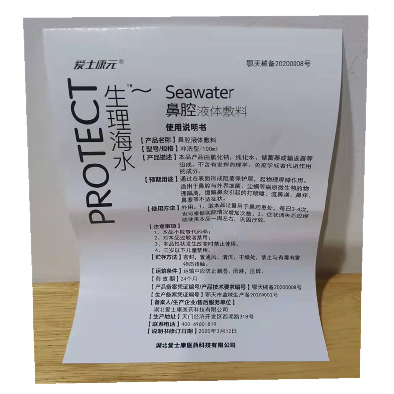 愛(ài)士康元生理海水鼻腔液體敷料100ml/瓶源頭工廠