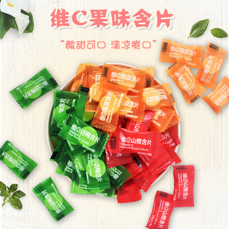 維生素C咀嚼片120g罐裝山楂話梅陳皮源頭工廠 酸甜果味維C含片代加工