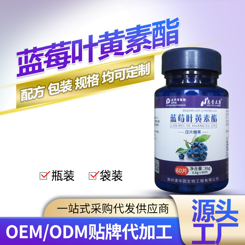 藍(lán)莓葉黃素酯壓片糖瓶裝藍(lán)莓葉黃素咀嚼片壓片糖果OEM代加工