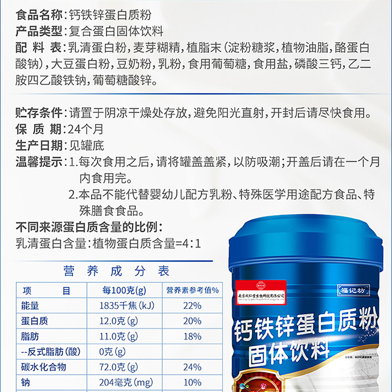 鈣鐵鋅蛋白粉OEM貼牌代加工 蛋白質(zhì)粉固體飲料南京同仁堂源頭廠家批發(fā)