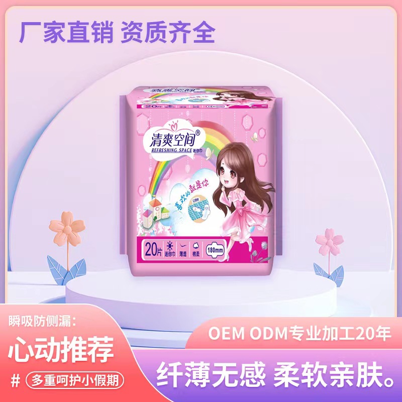 衛(wèi)生巾工廠批發(fā)清爽空間20片棉柔親膚迷你巾 女性私護(hù)用品批發(fā)代