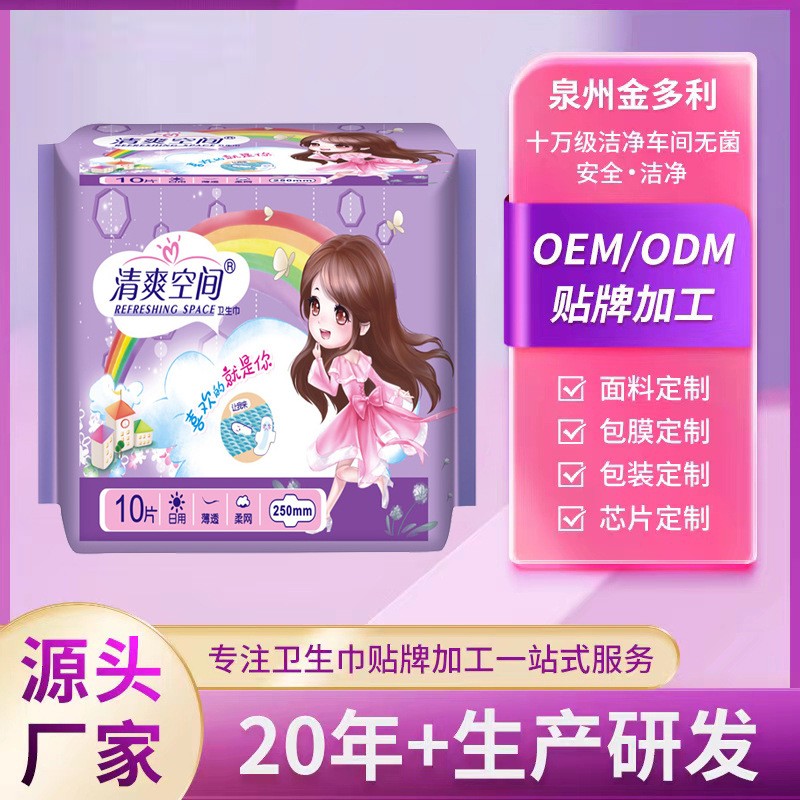 衛(wèi)生巾批發(fā)工廠代發(fā)清爽空間干爽透氣負(fù)離子姨媽巾護(hù)墊日用綿柔款