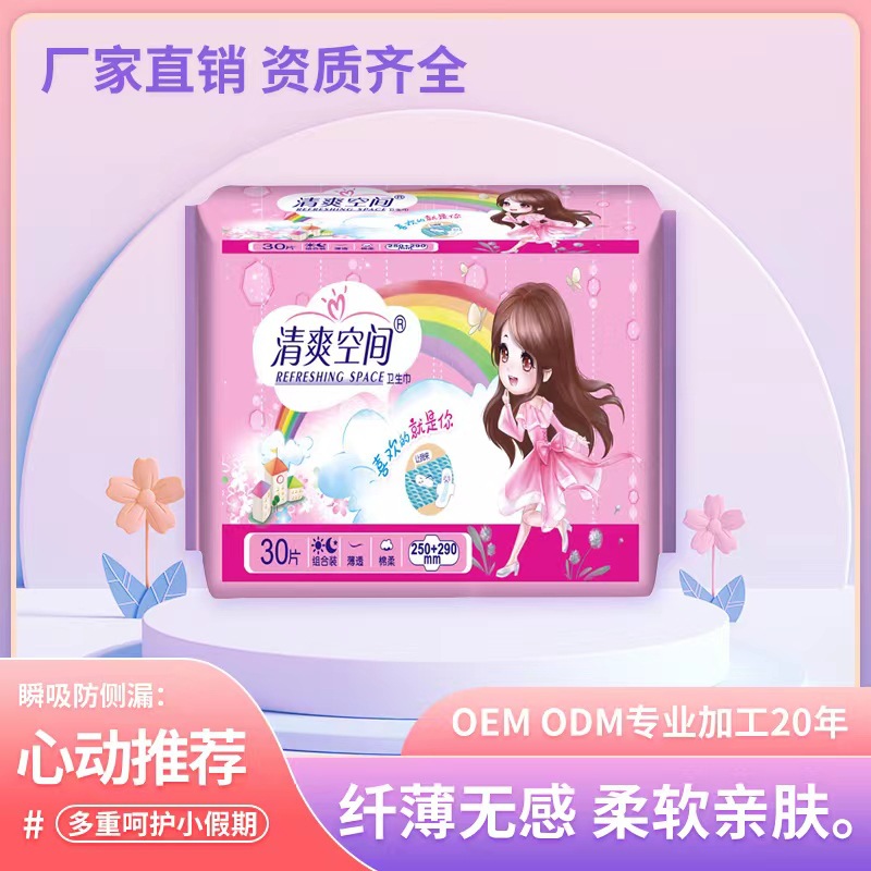 清爽空間30片日夜組合棉柔衛(wèi)生棉 透氣干爽姨媽巾廠家批發(fā)代理
