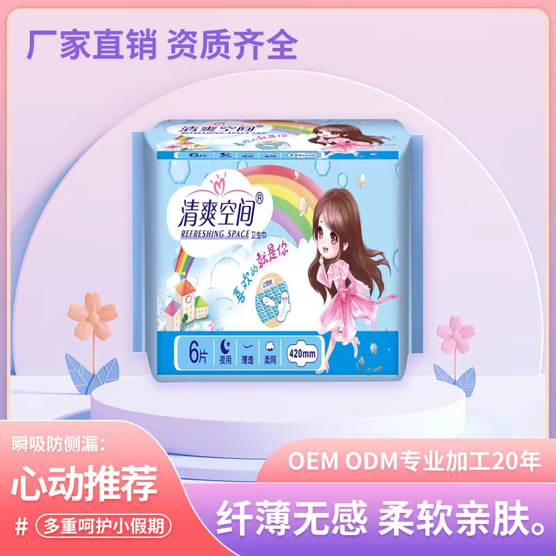 泉州工廠現(xiàn)貨批發(fā)清爽空間6片420超長(zhǎng)產(chǎn)婦衛(wèi)生巾護(hù)理墊 包郵