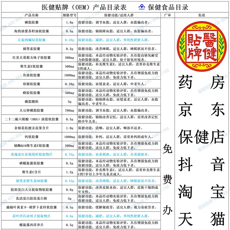 保健藍帽食品目錄