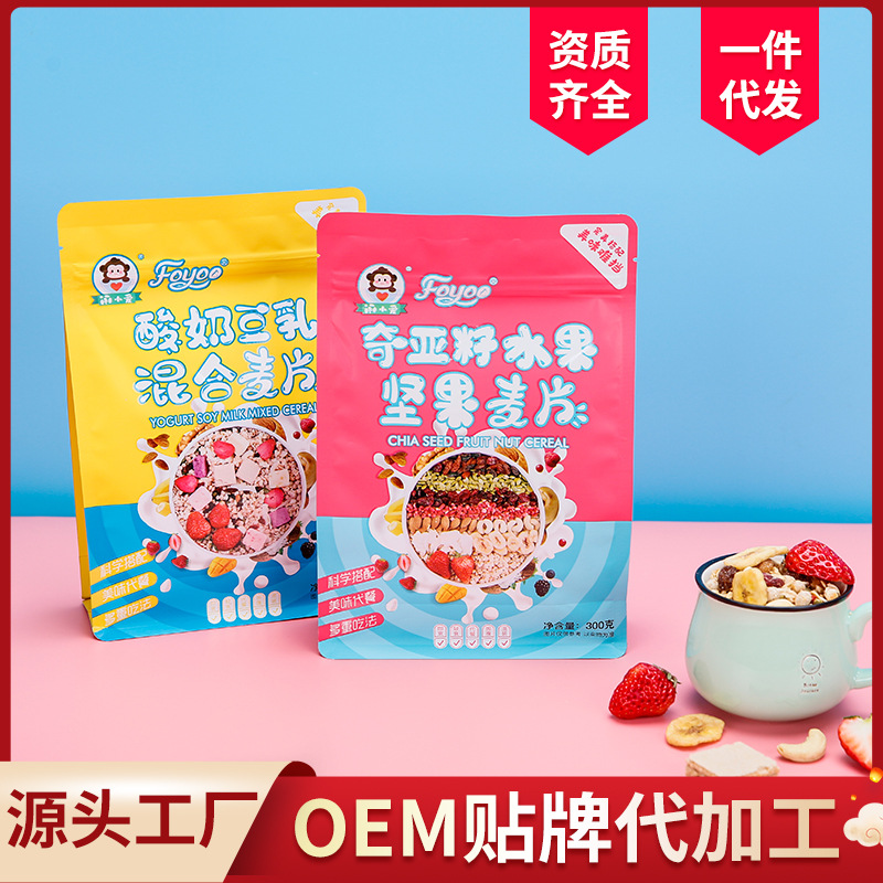 酸奶豆乳混合麥片奇亞籽水果堅果早餐燕麥片2*300gOEM代加工