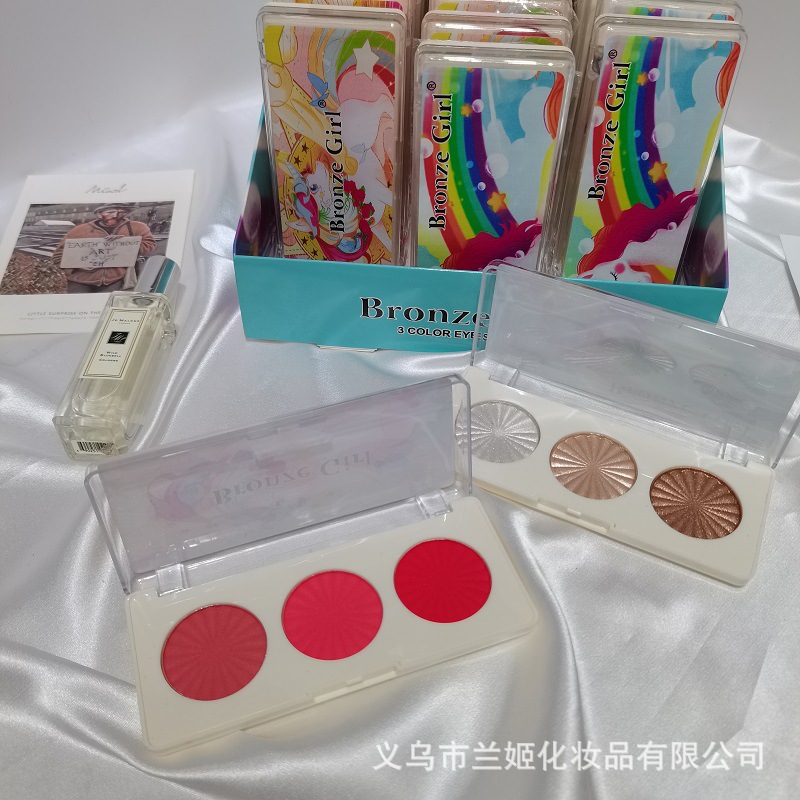 國(guó)貨三色高光腮紅眼影貼牌定制代加工