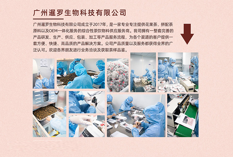 廣州暹羅生物科技有限公司是一家專業(yè)從事調(diào)味茶貼牌代加工的服務(wù)型企業(yè)。主要業(yè)務(wù)包括品牌定制、OEM貼牌、包裝設(shè)計(jì)、調(diào)味茶原料供應(yīng)、包裝采購(gòu)