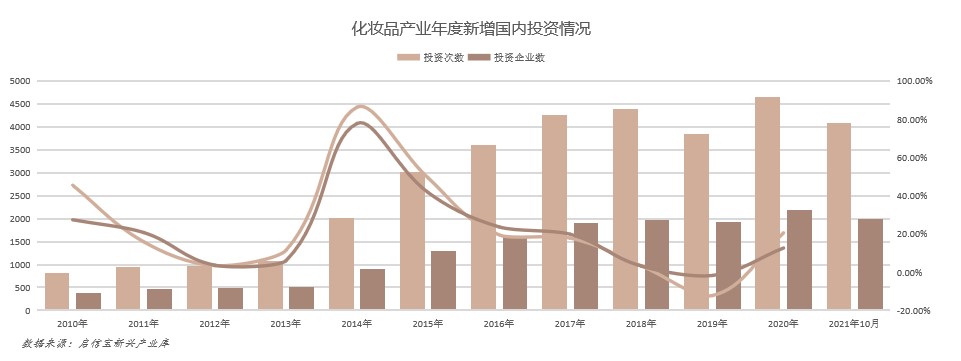 近日,合合信息旗下啟信寶發(fā)布《2021全國化妝品產(chǎn)業(yè)區(qū)域研究報告》(下文簡稱“報告”),通過大數(shù)據(jù)洞悉中國化妝品產(chǎn)業(yè)發(fā)展現(xiàn)狀。報告顯示,近10年,我國化妝品企業(yè)新增數(shù)量逐年增加。2