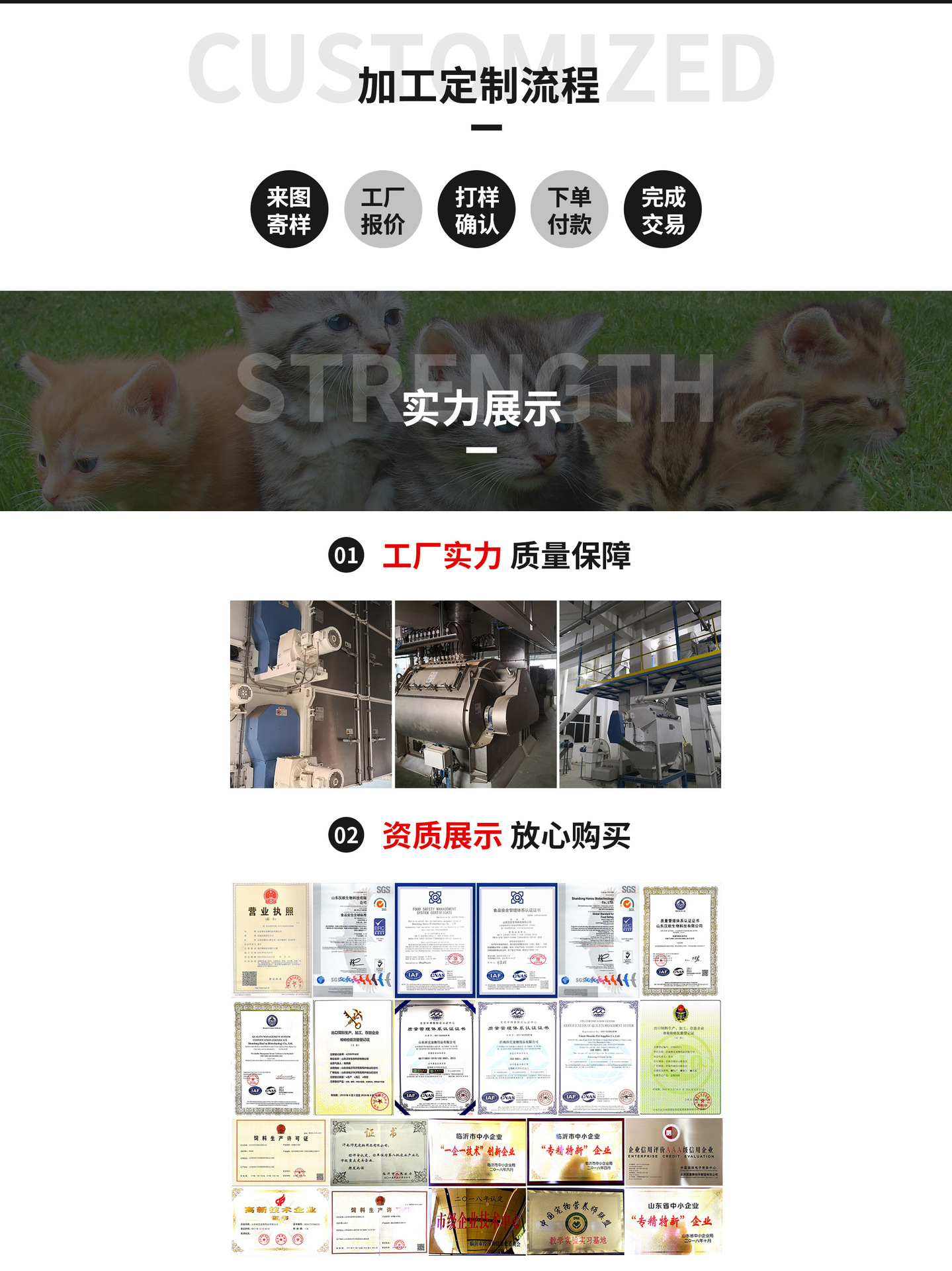 漢歐:公司選用國(guó)內(nèi)先進(jìn)的牧羊設(shè)備,設(shè)有寵物干糧車間,現(xiàn)擁有六條生產(chǎn)線,其中包括有時(shí)產(chǎn)2噸產(chǎn)線兩條,時(shí)產(chǎn)3噸產(chǎn)線兩條,時(shí)產(chǎn)5噸產(chǎn)線一條,時(shí)產(chǎn)10噸產(chǎn)線一條,年產(chǎn)量可達(dá)26萬(wàn)噸;寵物濕糧車間,罐頭可日產(chǎn)10多萬(wàn)罐、貓條可日產(chǎn)10多萬(wàn)條、妙鮮包、寵物火腿腸流水線、零食、凍干車間,設(shè)備選擇多樣化,以求最大化為客戶降低成本。同時(shí),為保證產(chǎn)品的質(zhì)量與安全,對(duì)于所有品質(zhì)風(fēng)險(xiǎn)高的動(dòng)物源性材料均自產(chǎn),自建油脂、肉粉、雞肝粉,風(fēng)味劑車間,肉粉的揮發(fā)性鹽基氮每百克小于40mg、動(dòng)物油脂的酸價(jià)小于等于1。漢歐主要有三大核心競(jìng)爭(zhēng)優(yōu)勢(shì):1)以服務(wù)為核心為客戶創(chuàng)造價(jià)值;2)精益的成本控制能力;3)追求卓越的工廠管理。公司在為寵物行業(yè)具有品牌運(yùn)營(yíng)能力的品牌商提供健康優(yōu)質(zhì)的寵物食品的同時(shí),針對(duì)性地提供在產(chǎn)品研發(fā)、供應(yīng)鏈等綜合性的解決方案.