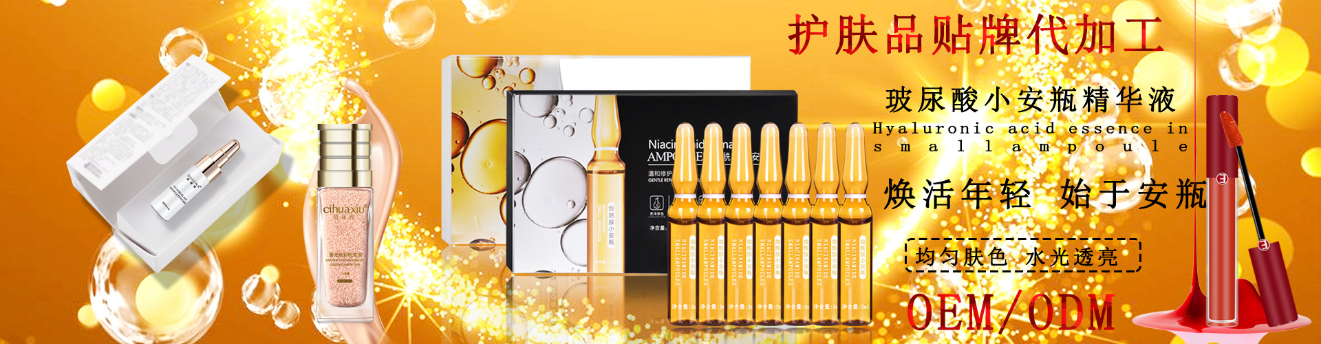 廣州嬌比萃化妝品有限公司是一家研發(fā)、生產(chǎn)、設(shè)計(jì)、策劃為一體的化妝品企業(yè),專業(yè)為國內(nèi)外護(hù)膚品牌及淘寶、微商、院線等線上線下客戶打造爆款及流通品類護(hù)膚品、國妝產(chǎn)品的貼牌、研發(fā)、生產(chǎn)、備案等,我廠積累豐富成熟的配方,滿足客戶的各類產(chǎn)品特性、功效等質(zhì)量要求,專業(yè)生產(chǎn)加工的公司,擁有完整、科學(xué)的質(zhì)量管理體系。廣州嬌比萃化妝品有限公司的誠信、實(shí)力和產(chǎn)品質(zhì)量獲得業(yè)界的認(rèn)可。歡迎各界朋友蒞臨參觀、指導(dǎo)和業(yè)務(wù)洽談。