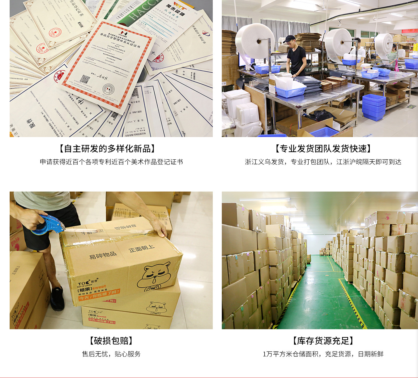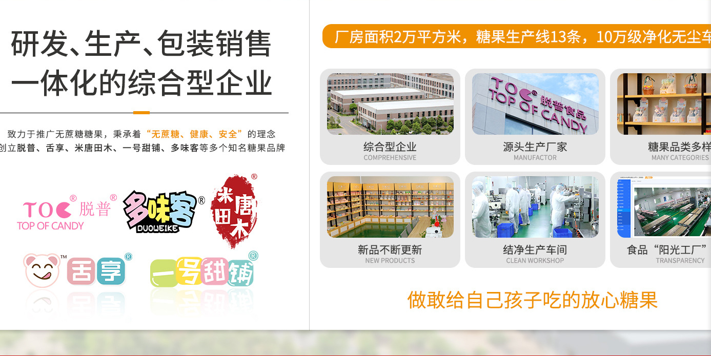 義烏市普拉食品有限公司是糖果、各種精品糖果棒棒糖等產(chǎn)品專(zhuān)業(yè)生產(chǎn)加工的公司,擁有完整、科學(xué)的質(zhì)量管理體系