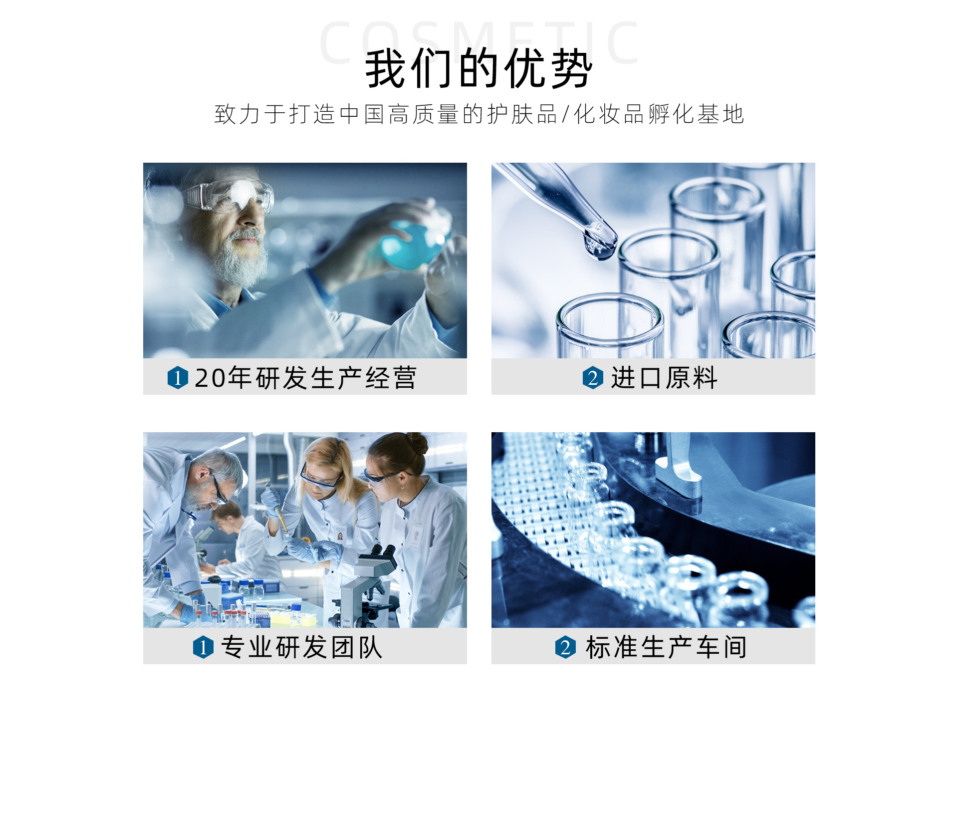 廣州市弘雅化妝品有限公司主營護膚產(chǎn)品,面膜,精華,潔面乳,防護霜,隔離霜,面霜,CC霜等多個生產(chǎn)線,擁有完整、科學(xué)的質(zhì)量管理體系。廣州市弘雅化妝品有限公司的誠信、實力和產(chǎn)品質(zhì)量獲得業(yè)界的認(rèn)可。 弘雅化妝品有限公司位于廣東廣州,一家科研、生產(chǎn)、銷售一體化的綜合型企業(yè)。所有產(chǎn)品從市場調(diào)研、開發(fā)、策劃、到銷售推廣培訓(xùn)均有專業(yè)的人員實施。公司配備專業(yè)實驗基地和標(biāo)準(zhǔn)化生產(chǎn)工廠,嚴(yán)格監(jiān)控質(zhì)量。打造優(yōu)良護膚品牌。 弘雅旗下的泊舒創(chuàng)立于2008年,是一個專注解決問題肌膚的功效護膚品牌,‘為問題肌膚而生,以拯救問題肌膚為己任’。作為一個功效護膚的領(lǐng)先品牌,泊舒始終秉承著“天然,健康,安全”的產(chǎn)品理念,以其卓越的功效立足于市場,并深受消費者喜愛。