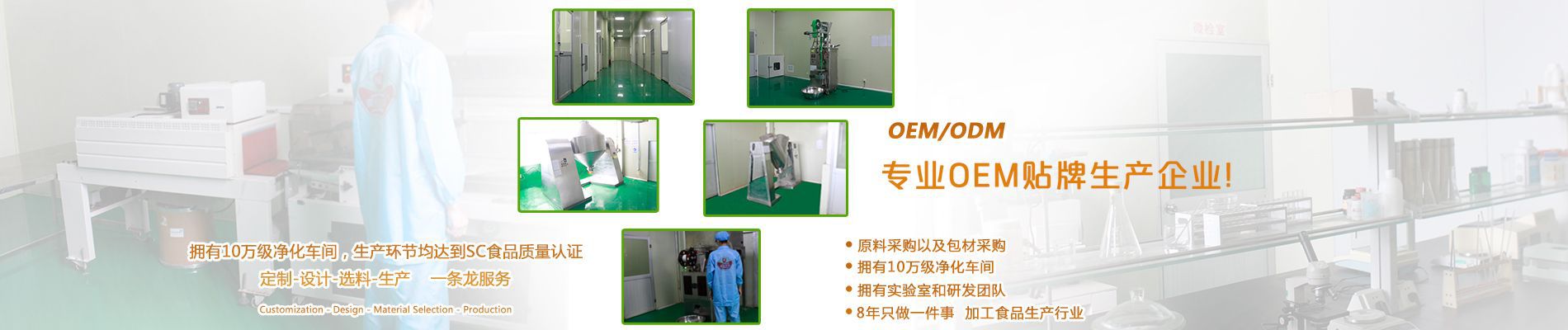 廣州美緣堂營養(yǎng)食品有限公司成立于2011年8月30日,是一家 集研究、開發(fā)、生產(chǎn)和銷售于一體的現(xiàn)代化高科技營養(yǎng)食品企業(yè), 具有較強(qiáng)的科研開發(fā)能力和先進(jìn)的技術(shù)實力。各生產(chǎn)車間達(dá)到10萬 級凈化標(biāo)準(zhǔn),完全按照GMP認(rèn)證要求進(jìn)行生產(chǎn),大大提高了產(chǎn)品的 安全度和穩(wěn)定性。先進(jìn)的生產(chǎn)設(shè)備:全自動包裝灌裝機(jī),全自動安 瓶灌裝機(jī),糖果自動包裝機(jī),旋轉(zhuǎn)式壓片機(jī)等,擁有清洗、噴霧、 干燥、混合、封裝等工藝設(shè)備,可提供來料加工、OEM貼牌代加工 等服務(wù),生產(chǎn)環(huán)節(jié)及流程鈞達(dá)到國家SC食品質(zhì)量認(rèn)證。