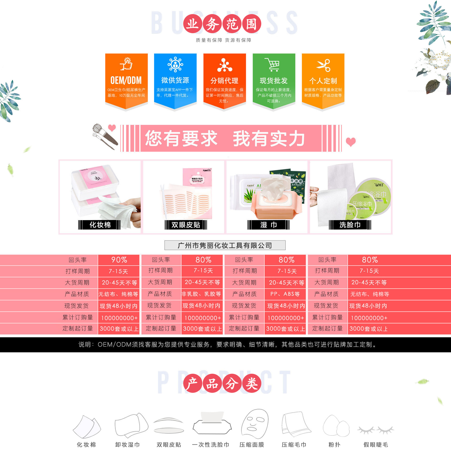 廣州市雋麗化妝工具有限公司是雙眼皮貼、無紡布化妝棉、粉撲、一次性棉毛巾、雙眼皮貼、無紡布化妝棉、粉撲、一次性棉毛巾等產(chǎn)品專業(yè)生產(chǎn)加工的公司,擁有完整、科學(xué)的質(zhì)量管理體系。廣州市雋麗化妝工具有限公司的誠信、實力和產(chǎn)品質(zhì)量獲得業(yè)界的認(rèn)可。歡迎各界朋友蒞臨參觀、指導(dǎo)和業(yè)務(wù)洽談。