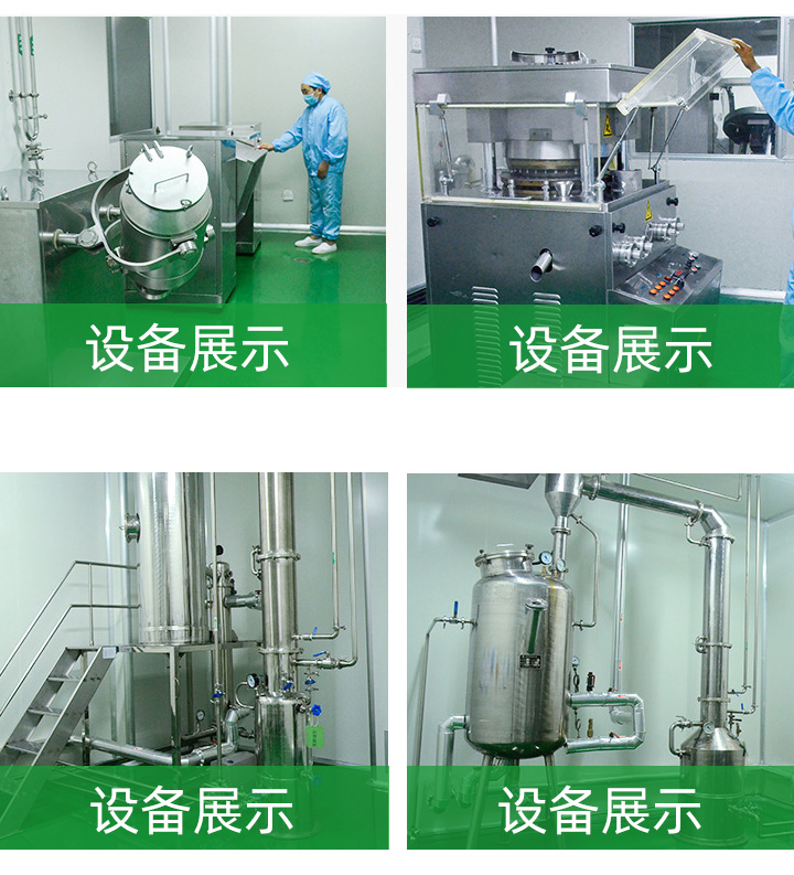 車間配置國內(nèi)先進的生產(chǎn)設(shè)備,先進的中藥提取濃縮設(shè)備,多臺高速旋轉(zhuǎn)式壓片機,三維混合機、高速鋁塑泡罩機,全自動含片生產(chǎn)線以及口服液自動灌裝生產(chǎn)線。能夠生產(chǎn)出各類片劑、粉劑、膠囊、液體、OEM代加工等各類劑型。