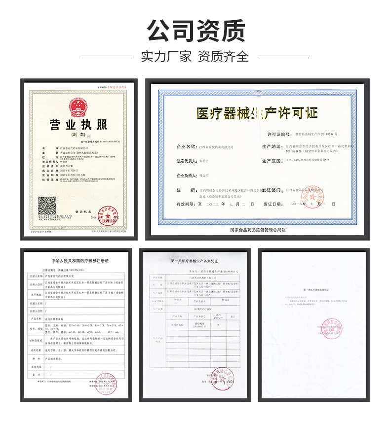 江西海億醫(yī)療器械有限公司位于江西省贛州市國(guó)家5A級(jí)瑞金市經(jīng)濟(jì)技術(shù)開(kāi)發(fā)區(qū)。成立伊始,遵循不忘健康產(chǎn)業(yè)初心,牢記以客戶為本,顧客健康至上為宗旨,打造集藥品、醫(yī)療器械、化妝品、消毒產(chǎn)品、保健用品研究,生產(chǎn),銷售,招商加盟,國(guó)際知名品牌代理一體現(xiàn)代化綜合性醫(yī)藥產(chǎn)業(yè)。旗下有生產(chǎn)公司:江西百代藥業(yè)有限公司、江西鐘老祖藥業(yè)有限公司,企業(yè)已成功獲批械字號(hào)2個(gè),消字號(hào)批文6個(gè),健字號(hào)批文24個(gè),以及各類外用膏貼、油劑、噴劑、軟膏等生產(chǎn)許可證。公司膏藥類別齊全,擁有膏藥貼; 消痛貼; 保健貼; 止痛貼; 筋骨貼; 保健膏; 明目膏; 明目液; 藥油; 搽劑; 保健液; 消痛凝膠; 噴劑; 乳膏; 水劑,身體護(hù)理用品; 保暖貼/懷爐/保暖用品; 保健用品; 暖貼、暖寶寶、發(fā)熱貼; 骨及關(guān)節(jié)康復(fù)用品。公司秉承“誠(chéng)信為本,質(zhì)量為生命,服務(wù)至上,追求卓越”的服務(wù)理念,堅(jiān)持在行業(yè)內(nèi)創(chuàng)造獨(dú)有的品牌特色和核心競(jìng)爭(zhēng)力,為消費(fèi)者、合作伙伴創(chuàng)造最大價(jià)值。歡迎各界朋友蒞臨參觀、交流、指導(dǎo)和業(yè)務(wù)洽談。讓我們攜手奮進(jìn),共創(chuàng)美好的未來(lái)。