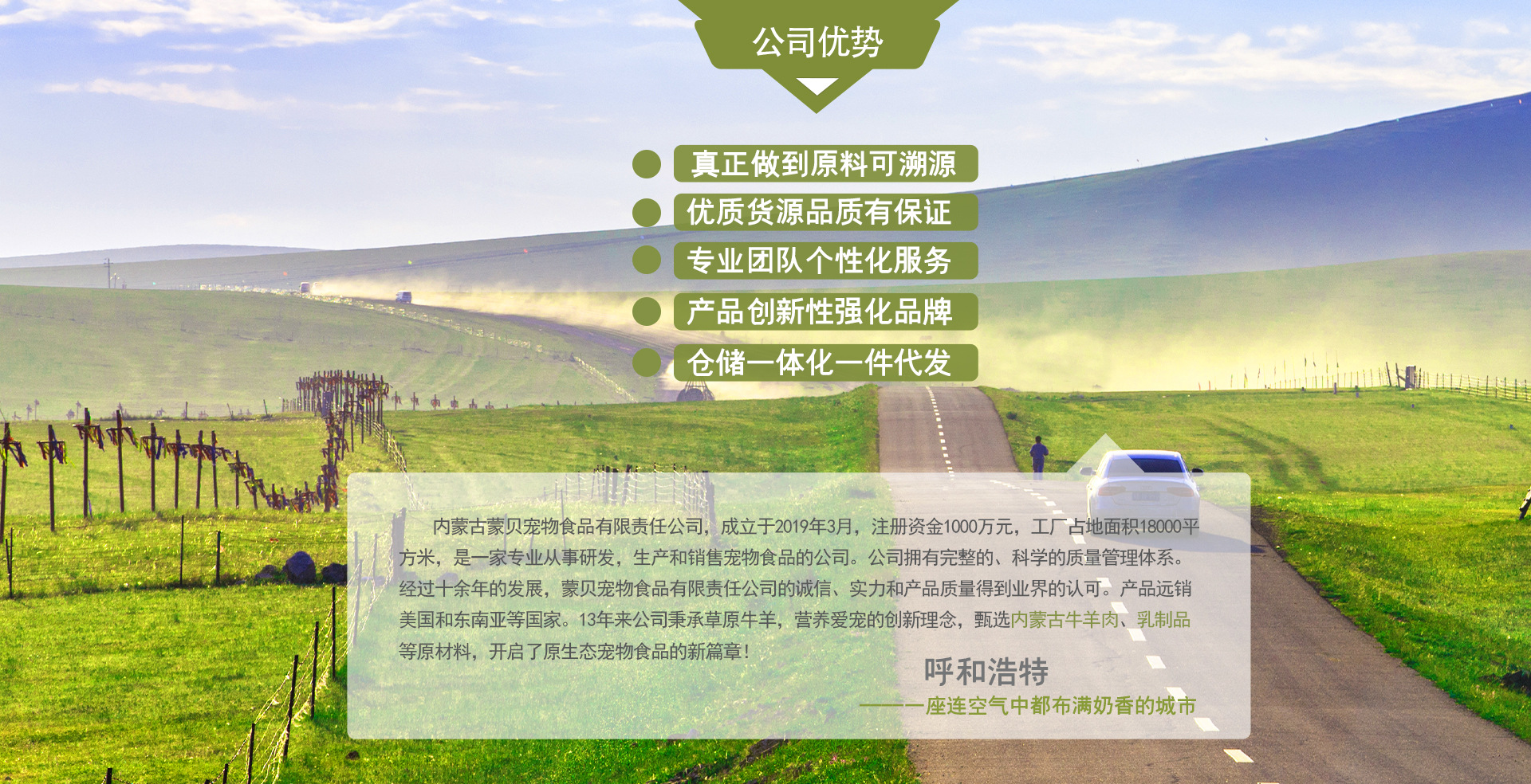 內(nèi)蒙古蒙貝寵物食品有限責(zé)任公司成立于2009年3月,注冊(cè)資金500萬元,是國(guó)內(nèi)一家專業(yè)生產(chǎn)銷售寵物食品的大型企業(yè)。旗下產(chǎn)品有純?nèi)?、骨頭、牛羊乳制品三大系列,產(chǎn)品中的牛、羊、鹿、雞肉和奶源等原材料,均產(chǎn)自內(nèi)蒙古無公害的天然草原牧場(chǎng)。公司現(xiàn)有員工186人,管理人員25人,廠區(qū)占地面積18000㎡,廠房面積3000㎡,辦公面積800㎡。公司具有科學(xué)的管理體系,一流的生產(chǎn)設(shè)備,先后和內(nèi)蒙古農(nóng)業(yè)大學(xué)動(dòng)物營(yíng)養(yǎng)研究所、內(nèi)蒙古肉類食品研究中心合作,共同研發(fā)了50余種以牛、羊肉為主要原料并配以多種營(yíng)養(yǎng)成份的寵物休閑食品。產(chǎn)品面市后,深受廣大客戶的贊賞,現(xiàn)已在國(guó)內(nèi)一二線城市形成了規(guī)模市場(chǎng),銷售渠道省會(huì)級(jí)城市全覆蓋。同時(shí)產(chǎn)品已遠(yuǎn)銷美國(guó)、韓國(guó)、東南亞等國(guó)家。