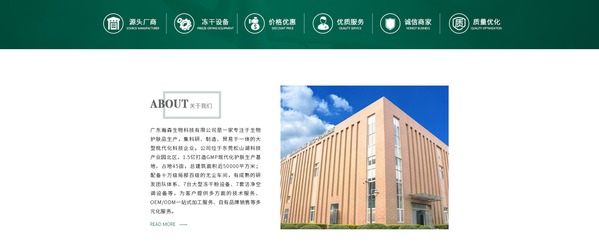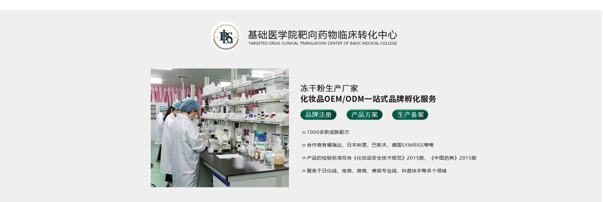 東莞市瀚森投資集團(tuán)創(chuàng)立于2000年,注冊(cè)資金1.5億,是東莞較早成立的民營(yíng)企業(yè);是集生物科技、護(hù)膚美容、酒店管理、房地產(chǎn)開(kāi)發(fā)經(jīng)營(yíng)、物業(yè)管理、企業(yè)孵化器、國(guó)內(nèi)貿(mào)易、實(shí)業(yè)投資等多元化集團(tuán)。廣東瀚森生物科技有限公司為東莞市瀚森集團(tuán)下屬子公司,專(zhuān)注于生物藥品、生物藥妝品生產(chǎn),是一家集研發(fā)、生產(chǎn)及銷(xiāo)售為一體的大型現(xiàn)代化科技企業(yè),可以為客戶(hù)提供原料供應(yīng)、成品生產(chǎn)、OEM/ODM、技術(shù)咨詢(xún)、包括自有品牌銷(xiāo)售等多元化的服務(wù)。 工廠位于東莞松山湖科技產(chǎn)業(yè)園北區(qū),公司廠區(qū)環(huán)境優(yōu)美,投資1.5億,占地41畝,總建筑面積近五萬(wàn)平方米。廠區(qū)按照歐盟GMP及國(guó)內(nèi)10年新版GMP法規(guī)為標(biāo)準(zhǔn)進(jìn)行設(shè)計(jì)建設(shè),生產(chǎn)車(chē)間均是十萬(wàn)級(jí)局部百級(jí)空氣凈化標(biāo)準(zhǔn)。廠房、設(shè)備等均驗(yàn)證合格,并已順利通過(guò)省食品藥品監(jiān)督管理局的驗(yàn)收。車(chē)間配有先進(jìn)制造設(shè)備和檢測(cè)儀器近300臺(tái),可以滿(mǎn)足產(chǎn)品的自主研發(fā)及檢測(cè),且檢驗(yàn)標(biāo)準(zhǔn)符合2010版《中國(guó)藥典》的要求。
