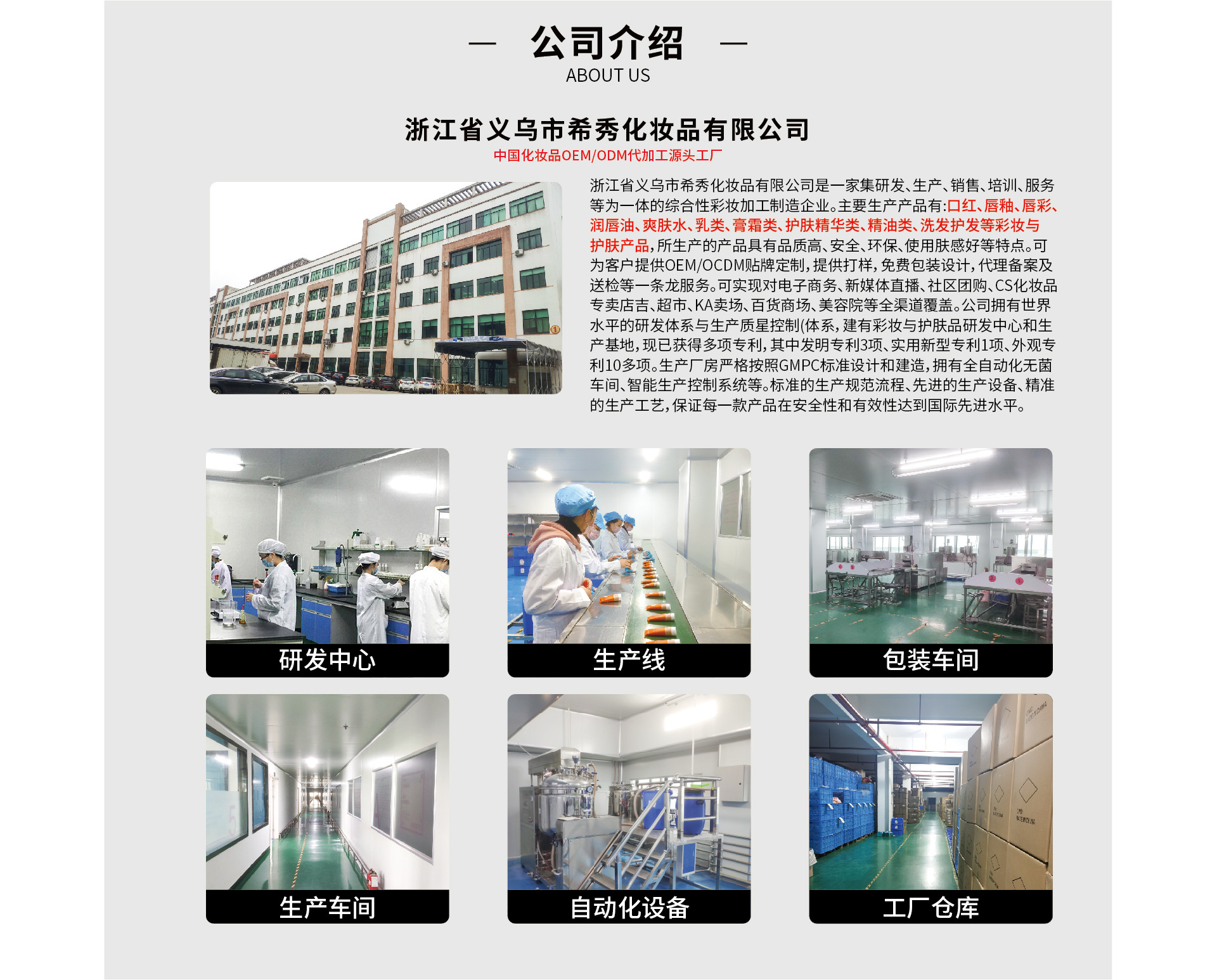 義烏市希秀化妝品有限公司是口紅,唇膏,眉筆,眼影,指甲油等產(chǎn)品專業(yè)生產(chǎn)加工的公司,擁有完整、科學(xué)的質(zhì)量管理體系。義烏市希秀化妝品有限公司的誠(chéng)信、實(shí)力和產(chǎn)品質(zhì)量獲得業(yè)界的認(rèn)可。歡迎各界朋友蒞臨參觀、指導(dǎo)和業(yè)務(wù)洽談。