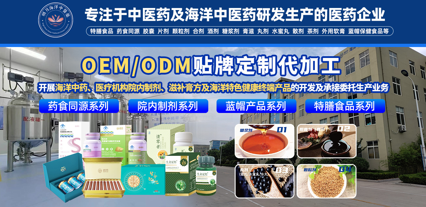 明月海洋中醫(yī)藥是青島明月海藻集團旗下專注于中醫(yī)藥及海洋中醫(yī)藥研發(fā)生產(chǎn)的醫(yī)藥企業(yè),致力于中醫(yī)藥傳承創(chuàng)新與海洋天然藥物的融合重構(gòu),按藥品GMP要求建有10000平米中藥制劑車間,可滿足合劑、丸劑、片劑、膠囊等11個劑型不同規(guī)模生產(chǎn),開展海洋中藥、醫(yī)療機構(gòu)院內(nèi)制劑、滋補膏方及海洋特色健康終端產(chǎn)品的開發(fā)及承接委托生產(chǎn)業(yè)務(wù),構(gòu)建涵蓋海洋中藥CDMO 一體化平臺,被列入山東省中醫(yī)藥產(chǎn)業(yè)發(fā)展規(guī)劃海洋中藥領(lǐng)軍企業(yè)。