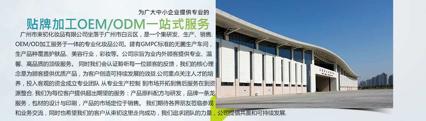 廣州束初化妝品工廠,是一家集開發(fā),生產(chǎn)和銷售為一體,專注于天然高品質(zhì)面膜與化妝品研發(fā)生產(chǎn)的高新技術(shù)企業(yè)。公司的創(chuàng)建、源于對美麗堅持不懈的追尋和對夢想矢志不渝的追求。隨著時代和商業(yè)模式的發(fā)展和開放,為人們迎來了個性化的品牌消費時代,生活素質(zhì)不斷提高,開放的消費觀讓品牌從意識萌芽發(fā)展到精神和文化價值的訴求高度。 自創(chuàng)建以來,公司專業(yè)研發(fā)團隊始終以高品質(zhì)、天然護膚產(chǎn)品為發(fā)展核心,并不斷創(chuàng)新變革,創(chuàng)造完美貼合東方膚質(zhì)的大眾化護膚產(chǎn)品,致力于全民的美麗事業(yè),實現(xiàn)更多的完美蛻變。在銷售體系方面,公司摒棄傳統(tǒng)實體店銷售模式,沿襲微電商發(fā)展的新脈絡(luò),通過廣大微電商群體與客戶無縫對接,零中間商的銷售模式完美實現(xiàn)了“輕奢華品質(zhì)、親民價格”,只為讓更多人輕易實現(xiàn)美麗容顏。 企業(yè)建設(shè)有10萬級低溫?zé)o菌封閉式廠房,和多條國際一流的化妝品生產(chǎn)線,實行全封閉凈化流水線生產(chǎn),所有產(chǎn)品經(jīng)過專業(yè)的測試和認(rèn)可,品質(zhì)安全有保證