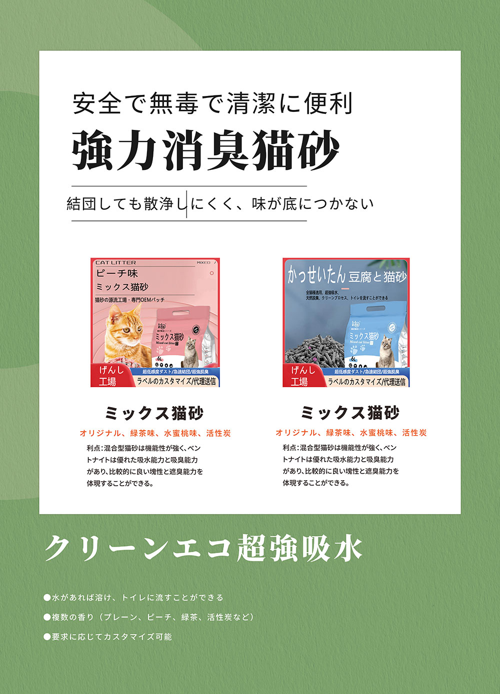 公司發(fā)展始終為客戶提供好的產品和技術支持、健全的售后服務,我公司主要經營貓砂生產研發(fā)、寵物用品、食品飼料批發(fā)、加工、代工OEM與銷售,寵物用品銷售,貨物或技術進出口。