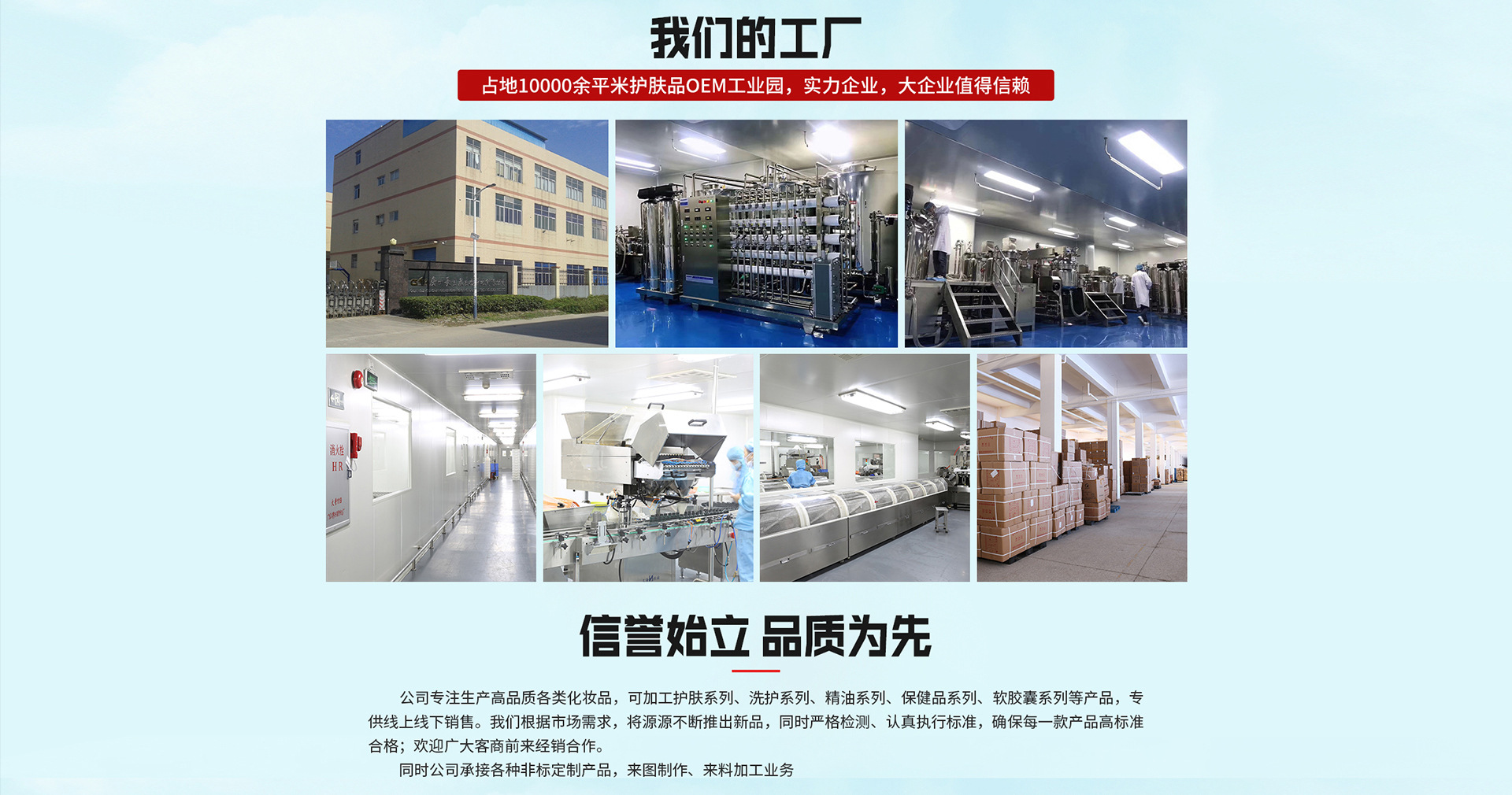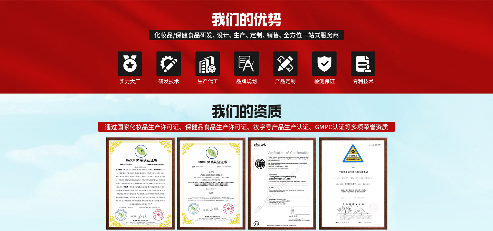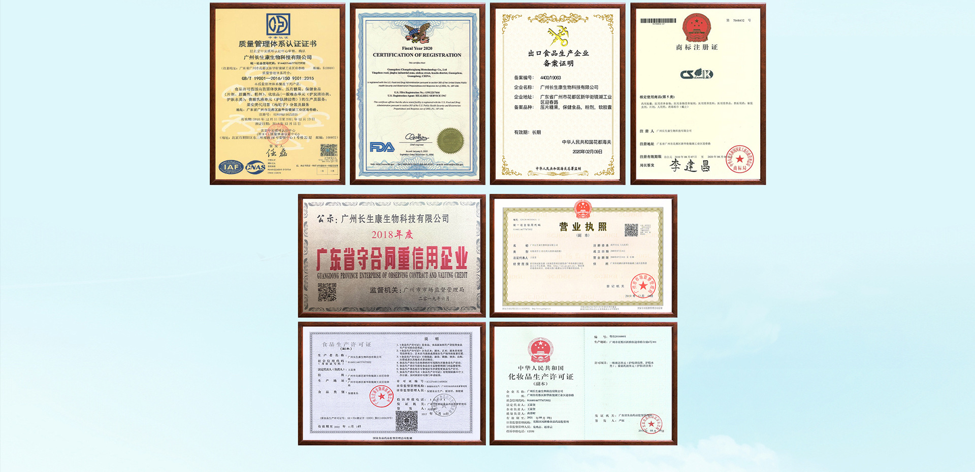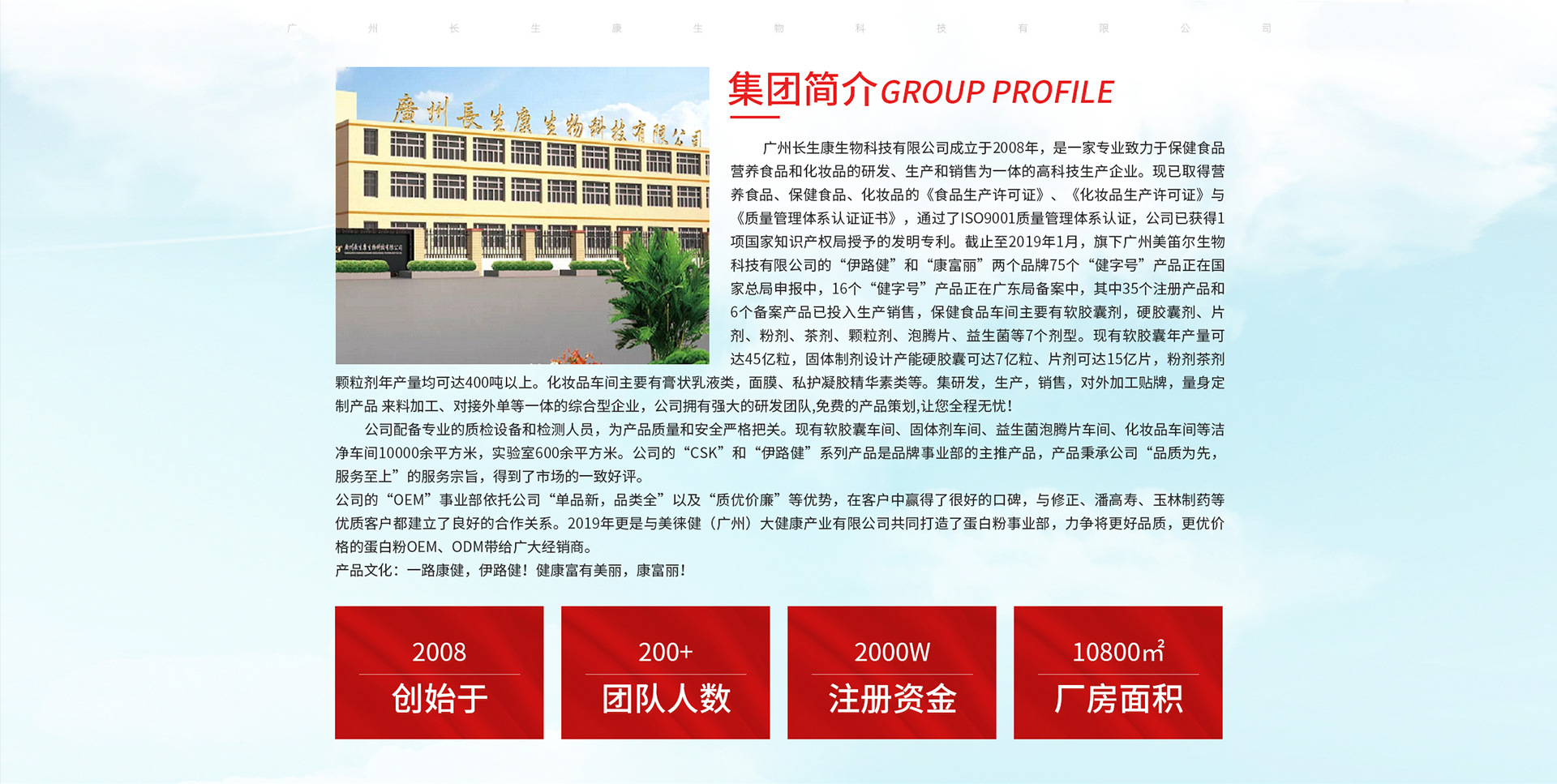 廣州長生康生物科技有限公司成立于2008年,是一家專業(yè)致力于保健食品、營養(yǎng)食品和化妝品的研發(fā)、生產(chǎn)和銷售為一體的高科技生產(chǎn)企業(yè)?,F(xiàn)已取得營養(yǎng)食品、保健食品、化妝品的《食品生產(chǎn)許可證》、《化妝品生產(chǎn)許可證》與《質(zhì)量管理體系認(rèn)證證書》,通過了ISO9001質(zhì)量管理體系認(rèn)證,公司已獲得1項國家知識產(chǎn)權(quán)局授予的發(fā)明專利。截止至2019年1月,旗下廣州美笛爾生物科技有限公司的“伊路健”和“康富麗”兩個品牌75個“健字號”產(chǎn)品正在國家總局申報中,16個“健字號”產(chǎn)品正在廣東局備案中,其中35個注冊產(chǎn)品和6個備案產(chǎn)品已投入生產(chǎn)銷售,保健食品車間主要有軟膠囊劑,硬膠囊劑、片劑、粉劑、茶劑、顆粒劑、泡騰片、益生菌等7個劑型?,F(xiàn)有軟膠囊年產(chǎn)量可達(dá)45億粒,固體制劑設(shè)計產(chǎn)能硬膠囊可達(dá)7億粒、片劑可達(dá)15億片,粉劑、茶劑、顆粒劑年產(chǎn)量均可達(dá)400噸以上。
