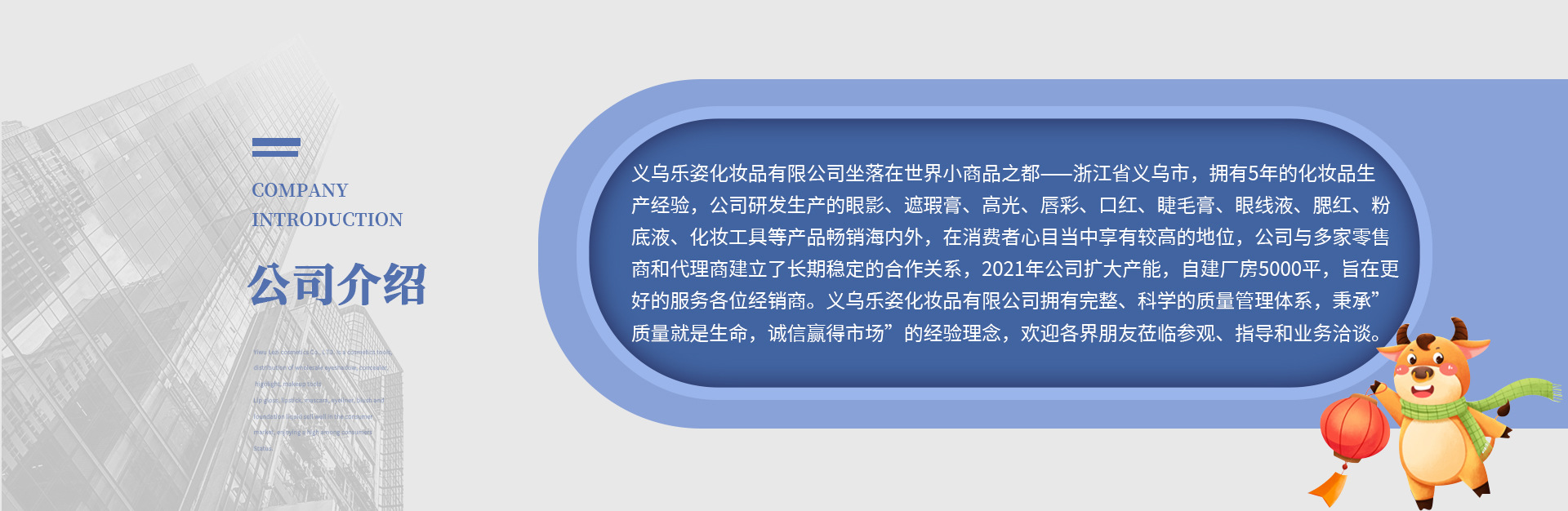 義烏樂(lè)姿化妝品有限公司是化妝工具、 經(jīng)銷批發(fā)的眼影、遮瑕膏、高光、化妝工具.唇彩、口紅、睫毛膏、眼線液、腮紅、粉底液暢銷消費(fèi)者市場(chǎng),在消費(fèi)者當(dāng)中享有較高的地位,公司與多家零售商和代理商建立了長(zhǎng)期穩(wěn)定的合作關(guān)系。義烏樂(lè)姿化妝品有限公司經(jīng)銷的眼影、遮瑕膏、高光、唇彩、口紅、睫毛膏、眼線液、腮紅、粉底液品種齊全、價(jià)格合理。眼影/眼影液、遮瑕膏、腮紅/口紅、唇釉/唇膏、睫毛膏、面膜/粉底等產(chǎn)品專業(yè)生產(chǎn)加工的公司,擁有完整、科學(xué)的質(zhì)量管理體系。義烏樂(lè)姿化妝品有限公司的誠(chéng)信、實(shí)力和產(chǎn)品質(zhì)量獲得業(yè)界的認(rèn)可。歡迎各界朋友蒞臨參觀、指導(dǎo)和業(yè)務(wù)洽談。