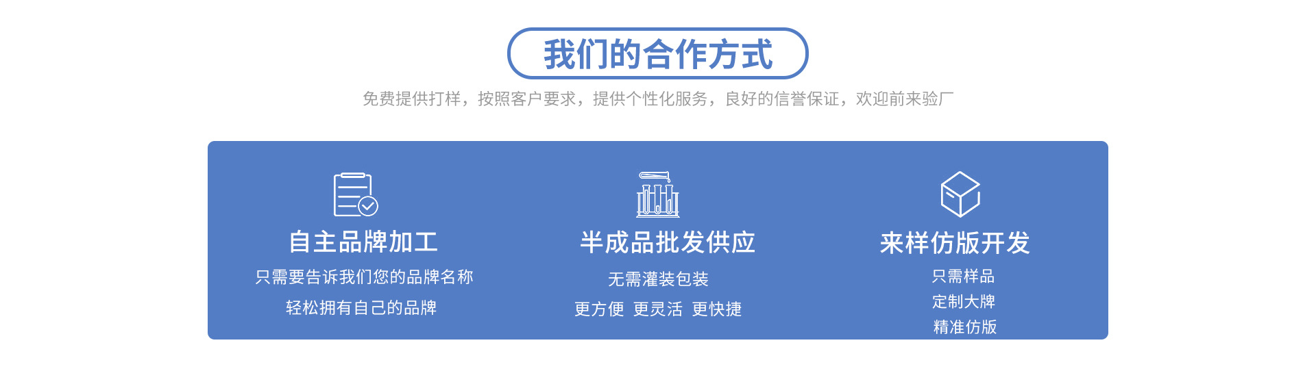 我司成立于2003年,專業(yè)從事頭發(fā)護(hù)理,身體護(hù)理等產(chǎn)品的開發(fā)及生產(chǎn)。我司總部設(shè)立于中國廣東省廣州市,自2003年以來為全球客戶提供專業(yè)服務(wù)。我們高度敬業(yè)的團(tuán)隊(duì),為全球客戶提供專業(yè)的行業(yè)經(jīng)驗(yàn)。我們?cè)趫?jiān)持國家藥監(jiān)局的生產(chǎn)標(biāo)準(zhǔn)及程序的前提下,為您提供最新的技術(shù)和設(shè)備。我司支持OEM和ODM服務(wù),讓您的創(chuàng)意成為現(xiàn)實(shí)。我們以自豪和誠信的態(tài)度致力于提供最好的產(chǎn)品和服務(wù)。