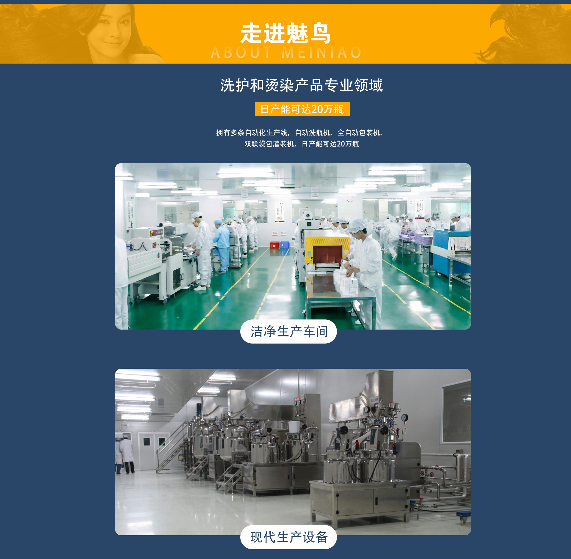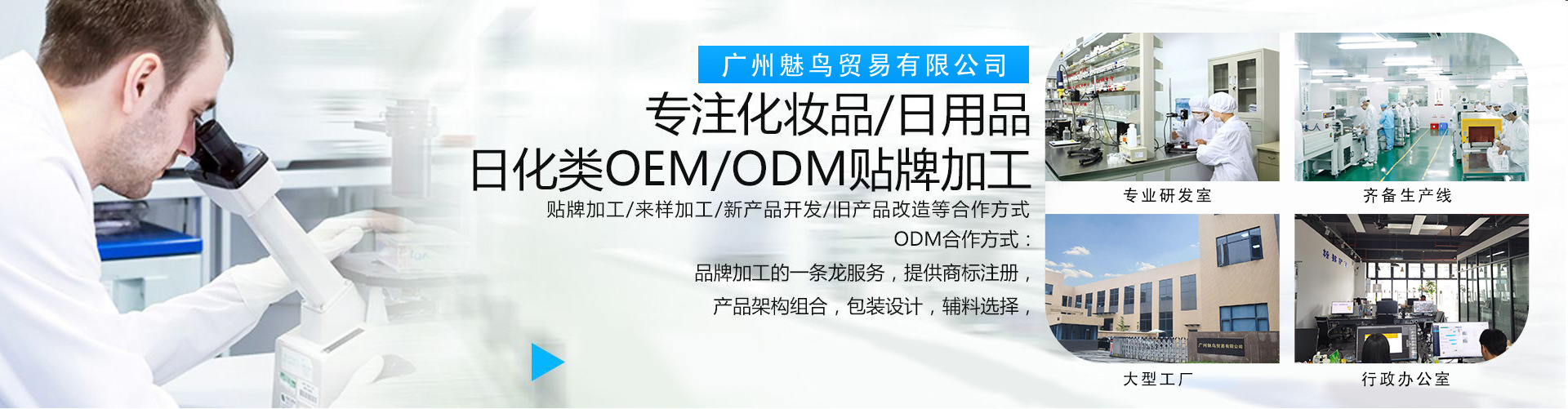 廣州魅鳥貿(mào)易有限公司是集洗發(fā)水、沐浴露、護(hù)發(fā)素、染發(fā)劑、護(hù)發(fā)劑等產(chǎn)品專業(yè)生產(chǎn)加工的公司,集研發(fā)、生產(chǎn)、銷售、為一體化的實(shí)力公司,經(jīng)過多年生產(chǎn)開發(fā),成功的開發(fā)出了一系列的專業(yè)線、日化線美發(fā)用品品牌;旗下品牌分別有“魅贊”、“沐春良”、“善韓家“等系列 生產(chǎn)車間環(huán)境完全按照GMPC的標(biāo)準(zhǔn)來建設(shè),擁有1000平方米的先進(jìn)化實(shí)驗(yàn)室和10萬級(jí)別灌裝車間。