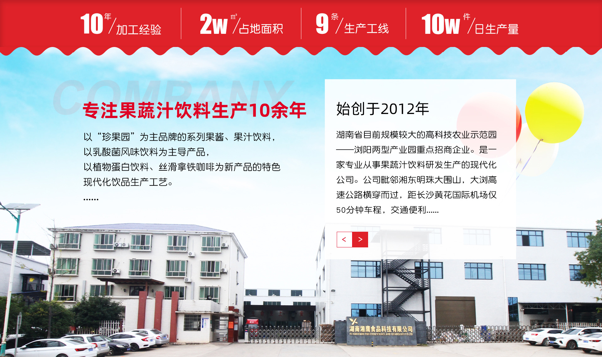 我公司為湖南省目前規(guī)模較大的高科技農業(yè)示范園——瀏陽兩型產業(yè)園重點招商企業(yè)。是一家專業(yè)從事果蔬汁飲料研發(fā)生產的現(xiàn)代化公司,毗鄰湘東明珠大圍山,大瀏高速公路橫穿而過,距長沙黃花國際機場僅50分鐘車程,交通便利,地理位置優(yōu)越。占地面積12000平方米,其中生產廠房8000平方米,現(xiàn)代化專業(yè)庫房3000平方米,研發(fā)試驗室500平方米。目前有10條全自動生產流水線,檢測化驗設施齊備、檢測手段完善,所有系列產品年生產能力均上萬噸。主要研發(fā)生產的產品有:果醬、功能性飲料、蛋白飲料(豆奶、核桃奶、花生奶等)、果汁飲料、果粒飲料、及其他飲料。在食品原輔材料儲存區(qū)域、水處理、原漿、灌裝車間等采取多重安全設施,保證產品質量在各個環(huán)節(jié)上的穩(wěn)定性和可靠性,并且引進飲品行業(yè)專業(yè)人才做產品工藝研發(fā),為高品質的產品提供了有力的保證。