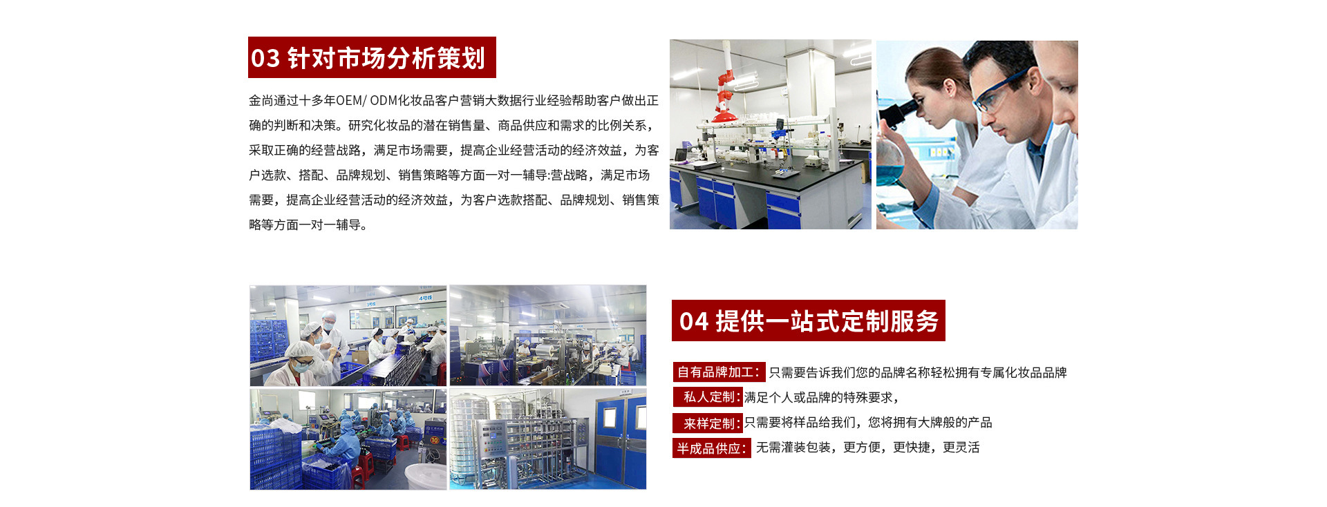 廣州市金尚化妝品有限公司是一家高新技術(shù)企業(yè)集美容產(chǎn)品科研、開(kāi)發(fā)、生產(chǎn)銷售于一體的化妝品OEM/ODM生產(chǎn)企業(yè),十萬(wàn)級(jí)GMPC、ISO22716等質(zhì)量認(rèn)證,公司擁有雄厚的科研實(shí)力,先進(jìn)的進(jìn)口生產(chǎn)設(shè)備,獨(dú)特的法國(guó)配方,完善的售后服務(wù)。公司研發(fā)并生產(chǎn)國(guó)際品牌 “泉水音樂(lè)”、 希思妮”、“微瀾素”等優(yōu)秀品牌。擁有美白祛斑霜、美白淡斑修護(hù)面膜、防曬霜等多個(gè)國(guó)妝特字號(hào)。卓越的品質(zhì)、大眾化的產(chǎn)品價(jià)位、獨(dú)特的科研技術(shù)平臺(tái)、準(zhǔn)確合理的市場(chǎng)定位,前沿市場(chǎng)多個(gè)爆款水光針、一分鐘祛眼袋、駐顏霜、素顏霜、睫毛增長(zhǎng)液、貴婦膏等多款配方,3000多種優(yōu)質(zhì)成熟配方可供電商、直播、微商、專業(yè)線、日化線等多個(gè)渠道