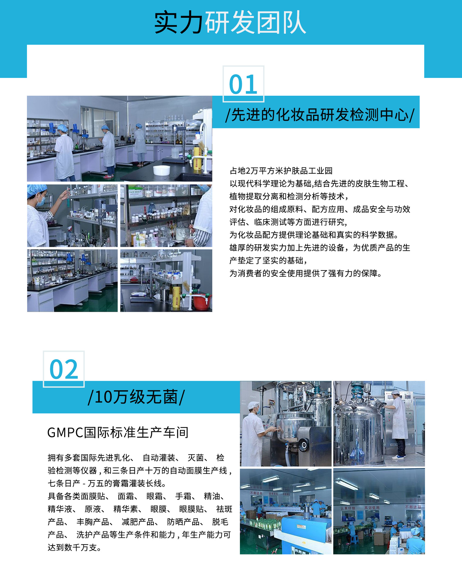 美膚堂(廣州)生物科技有限公司是一家高新技術(shù)企業(yè),為以科研、生產(chǎn)銷售、品牌策劃、全類護膚品OEM代加工、國內(nèi)外貿(mào)易的強大組合。 美膚堂(廣州)生物科技有限公司提出以高新技術(shù)研發(fā)應(yīng)用為企業(yè)打造核心競爭力的目標,做出準確預(yù)判和把握市場動向,順應(yīng)工業(yè)4.0智能化發(fā)展潮流,全程推行MCS、ERP管理系統(tǒng),生產(chǎn)過程數(shù)字化、自動化,嚴格管理企業(yè)精細化工程度,保證生產(chǎn)效率及品質(zhì)。