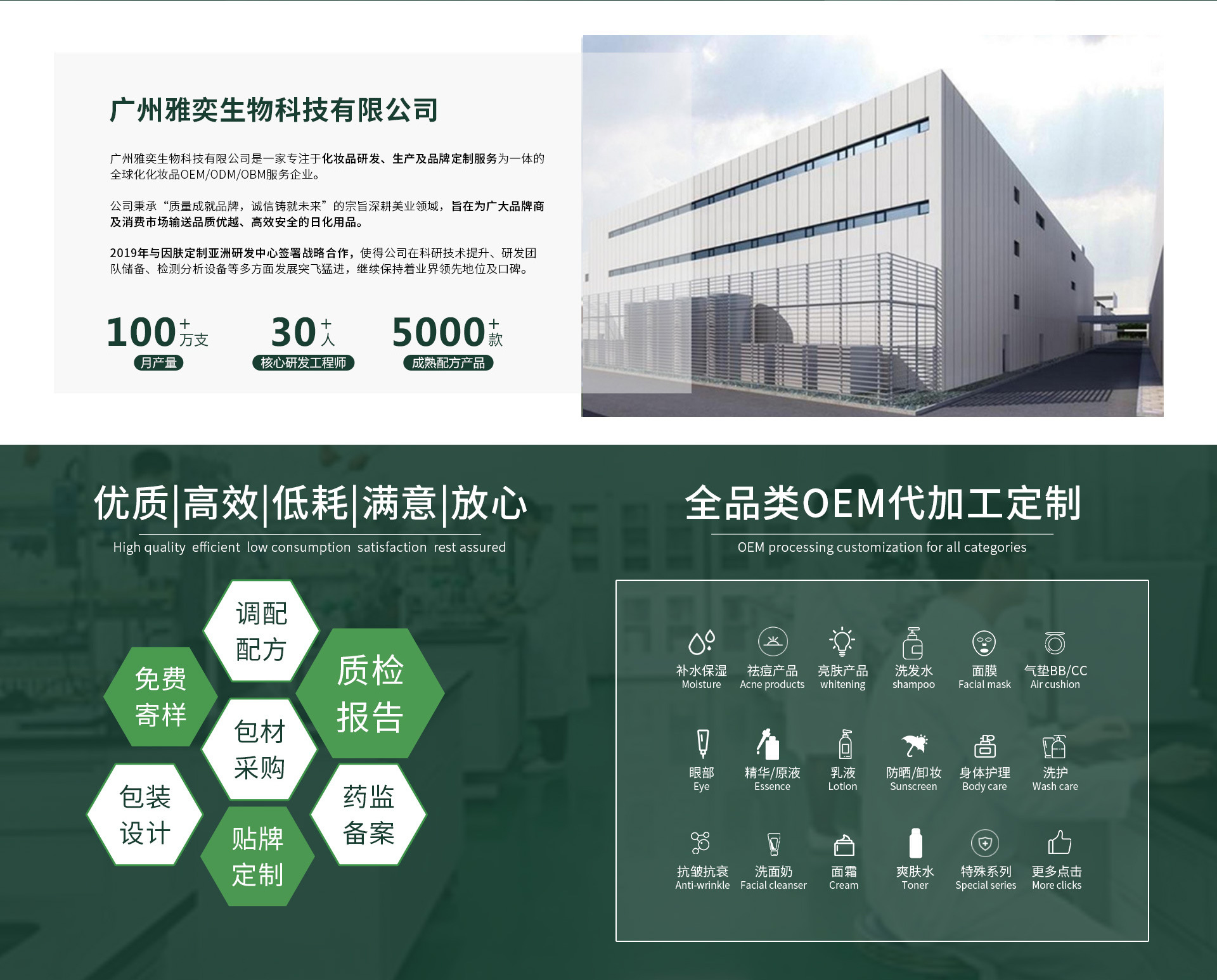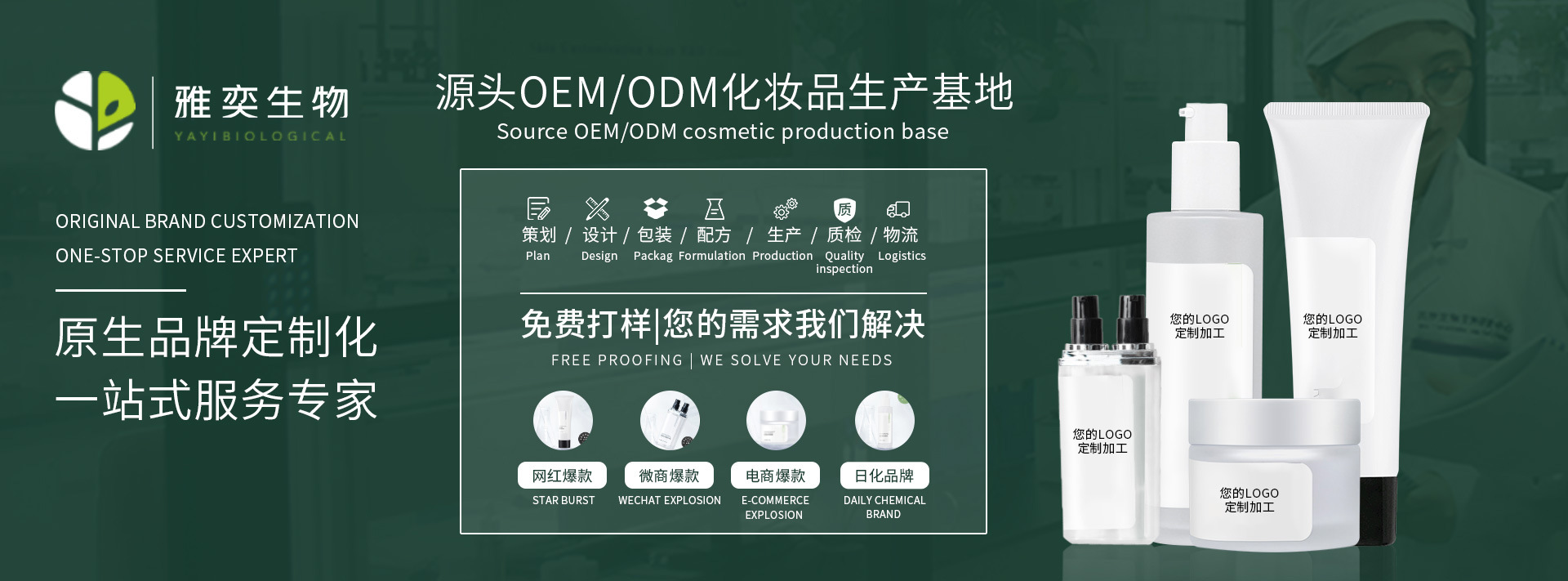 廣州雅奕生物科技有限公司是一家專業(yè)致力于民族化妝品“原生品牌個性化定制”、“初創(chuàng)品牌定制化升級”的一站式品牌策劃、產(chǎn)品研發(fā)與生產(chǎn)、營銷策劃為一體的專業(yè)化服務(wù)公司。 “雅奕科技”以“培育價值共生土壤,創(chuàng)建品牌共同繁榮”為己任,依托專業(yè)和科技最前沿,立足行業(yè)制高點,以匠心品質(zhì)締造安全,做中國民族化妝品原生品牌的價值增長引擎,助力中小微原生、初創(chuàng)品牌的孕育、出生和壯大!