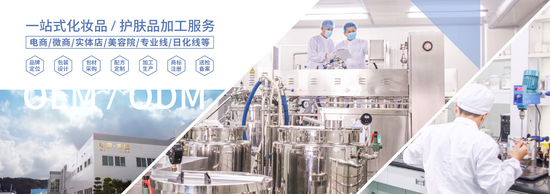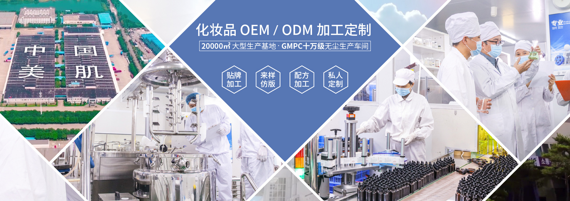 美肌化妝品有限公司是一家集護(hù)膚品/彩妝研發(fā)、原料研制、配方開(kāi)發(fā)、加工生產(chǎn)以及物流配套性服務(wù)為一體的全球化妝品服務(wù)企業(yè)。專注護(hù)膚品貼牌OEM、ODM加工15年、涵括粵妝字號(hào)、械字號(hào)、消字號(hào)、彩妝護(hù)膚,現(xiàn)已取得ISO9001,ISO22716,F(xiàn)DA認(rèn)證和美版GMPC認(rèn)證等進(jìn)出口生產(chǎn)貿(mào)易資質(zhì)及十多項(xiàng)國(guó)家認(rèn)證專利技術(shù)。