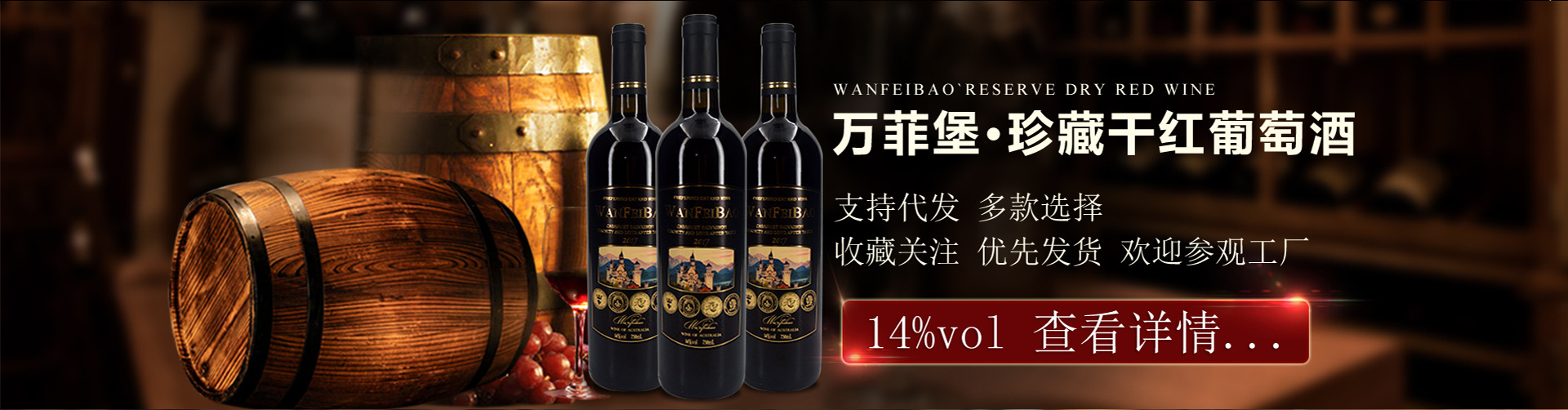 山東萬(wàn)菲堡酒業(yè)有限公司是干紅、甜酒、洋酒等產(chǎn)品專業(yè)生產(chǎn)加工的公司,擁有完整、科學(xué)的質(zhì)量管理體系。山東萬(wàn)菲堡酒業(yè)有限公司的誠(chéng)信、實(shí)力和產(chǎn)品質(zhì)量獲得業(yè)界的認(rèn)可。歡迎各界朋友蒞臨參觀、指導(dǎo)和業(yè)務(wù)洽談