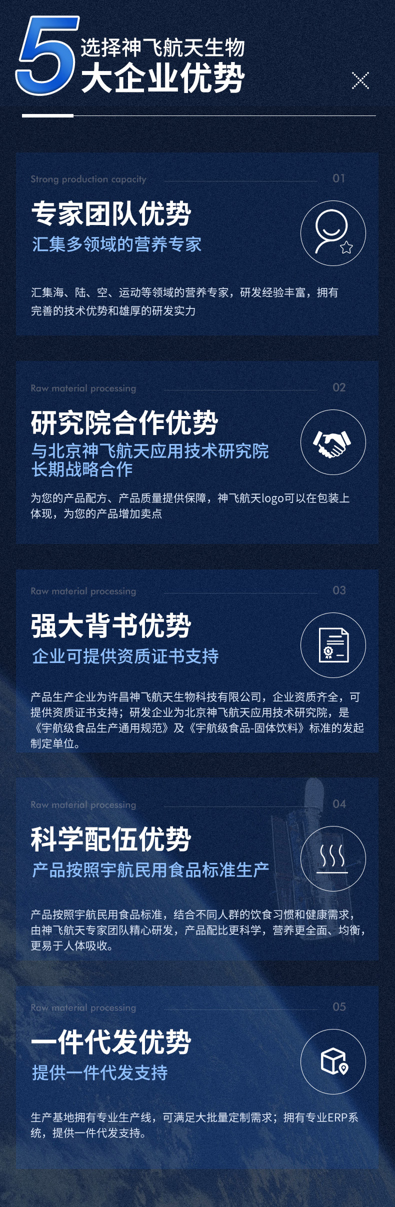三、原料加工優(yōu)勢:運(yùn)用現(xiàn)代食品工藝并結(jié)合神飛航天科技加工而成