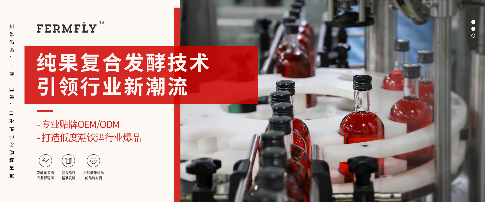一陽生(廈門)釀酒有限公司是具有自主研發(fā)團隊的花果酒智造商,也是復合發(fā)酵酒領域“全新品類的定義者和革新者”。我們甄選高品質(zhì)原料,從源頭把控品質(zhì),采用雙重復合工藝精準發(fā)酵,不加基酒不勾兌,還原花果新鮮濃郁口感,打造極具創(chuàng)新價值和獨特口感的純發(fā)酵花果酒。 我們站在市場和時尚的前沿,攜手眾多優(yōu)秀的合作伙伴,以客戶需求為使命,推出多款新潮易飲、香甜果味、時尚微醺的新式網(wǎng)紅酒飲,讓果酒如同奶茶、飲料般進入我們的尋常生活。一陽生釀酒致力于成為中國新式發(fā)酵花果酒領域的定義者及革新者,打造科技與時尚跨界組合的潮流果飲并形成市場影響力,玩轉(zhuǎn)輕松、獨特、個性、健康、自在快樂的品牌時尚,引領行業(yè)新潮流。