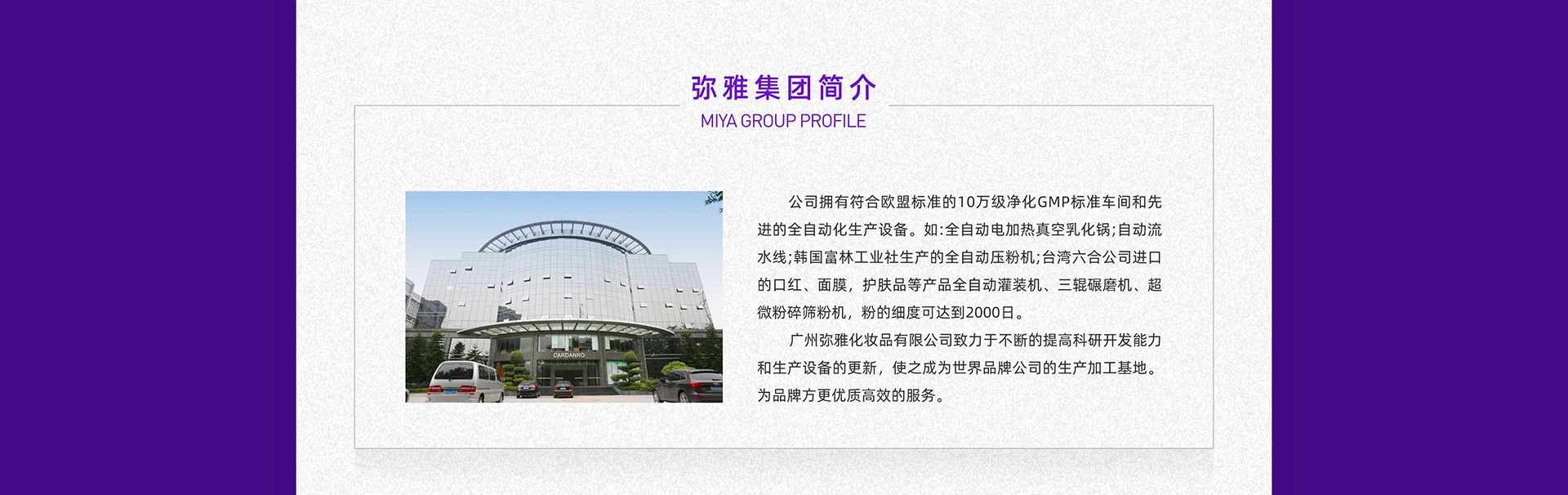 公司集產(chǎn)品研發(fā),生產(chǎn),銷售,服務于一體,為客戶提供 OEM/ODM/OBM一站式服務,涵蓋產(chǎn)品規(guī)劃、配方開發(fā)、包裝設計、功效測試、乳化、灌裝、 包裝、倉儲物流等全方位服務。秉承“創(chuàng)新、共贏”的核心價值 觀,以“創(chuàng)造客戶市場價值,推動行業(yè) 持續(xù)發(fā)展”為己任,堅持“質(zhì)量第一、服務為先、 效率至上”的管理理念,提供“貼心、精心、 耐心”的服務,不斷進行技術創(chuàng)新,研發(fā)安全有 效的高品質(zhì)產(chǎn)品,為客戶實現(xiàn)品牌價值和市場 價值。