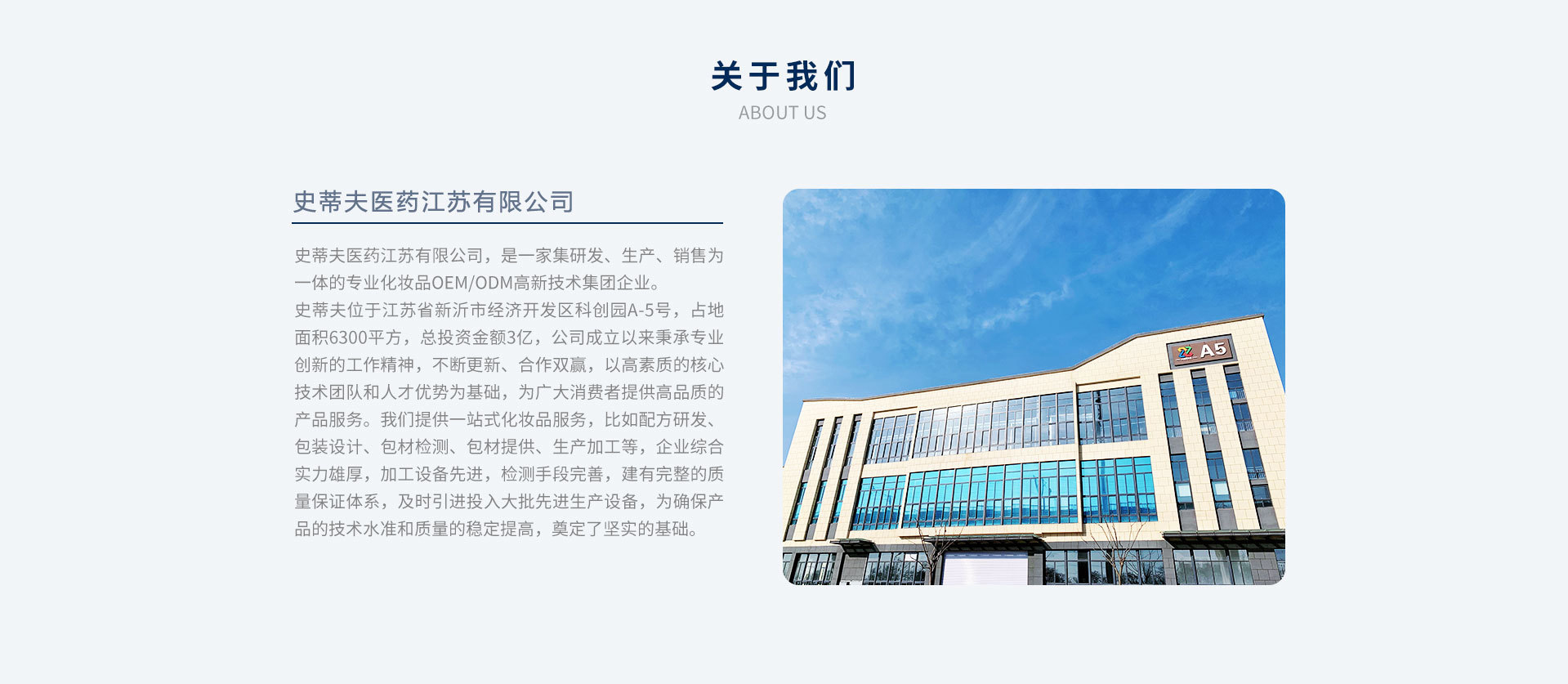 史蒂夫醫(yī)藥江蘇有限公司,是一家集研發(fā)、生產(chǎn)、銷(xiāo)售為一體的專(zhuān)業(yè)化妝品OEM/ODM高新技術(shù)集團(tuán)企業(yè)。史蒂夫位于江蘇省新沂市經(jīng)濟(jì)開(kāi)發(fā)區(qū)科創(chuàng)園A-5號(hào),占地面積6300平方,總投資金額3億,公司成立以來(lái)秉承專(zhuān)業(yè)創(chuàng)新的工作精神,不斷更新、合作雙贏,以高素質(zhì)的核心技術(shù)團(tuán)隊(duì)和人才優(yōu)勢(shì)為基礎(chǔ),為廣大消費(fèi)者提供高品質(zhì)的產(chǎn)品服務(wù)。我們提供一站式化妝品服務(wù),比如配方研發(fā)、包裝設(shè)計(jì)、包材檢測(cè)、包材提供、生產(chǎn)加工等,企業(yè)綜合實(shí)力雄厚,加工設(shè)備先進(jìn),檢測(cè)手段完善,建有完整的質(zhì)量保證體系,及時(shí)引進(jìn)投入大批先進(jìn)生產(chǎn)設(shè)備,為確保產(chǎn)品的技術(shù)水準(zhǔn)和質(zhì)量的穩(wěn)定提高,奠定了堅(jiān)實(shí)的基礎(chǔ)。