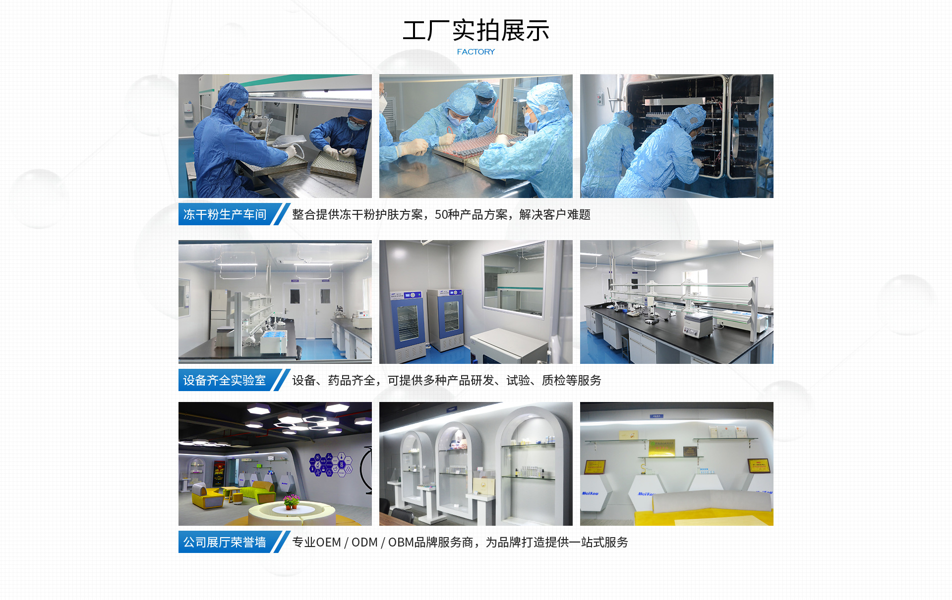美蔻生物:是一家集研究、生產(chǎn)、服務(wù)、培訓(xùn)、銷售為一體的綜合型美容護膚品企業(yè)。主要提供:產(chǎn)品開發(fā)及品牌升級、來樣100%標(biāo)準(zhǔn)化生產(chǎn)、個性O(shè)DM服務(wù)、量身定制OEM.定制產(chǎn)品研發(fā)。代表產(chǎn)品有:凍干粉、小球藻、米珍酵素面膜、修護面膜、修護冰晶、活力肽水等。公司旗下品牌有:翳甄優(yōu)品、蔻蒔美。 公司位于環(huán)境優(yōu)美的黃埔工業(yè)園區(qū)內(nèi),擁有近3000平方米的10萬級新標(biāo)準(zhǔn)的GMP生產(chǎn)廠房局部百級,靜態(tài)10萬級,動態(tài)30萬級。超制藥標(biāo)準(zhǔn)5倍以上純凈水質(zhì),確保產(chǎn)品純凈。全廠以純凈水為環(huán)狀循環(huán)系統(tǒng),水質(zhì)導(dǎo)電率< 0.3μS/cm。(中國藥典標(biāo)準(zhǔn),純水電導(dǎo)率< 2μS/cm)。 我們配有專業(yè)的研發(fā)實驗室和完備的自動化生產(chǎn)線,主要設(shè)備包括:生物發(fā)酵罐、高速純化系統(tǒng)、高速冷凍離心機、凍干機、乳化鍋、自動分裝線及系列檢測設(shè)備能針對不同客戶的個性化需求,提供各類護膚品研發(fā)、規(guī)劃生產(chǎn)、 設(shè)計研發(fā)、OEM/ODM,