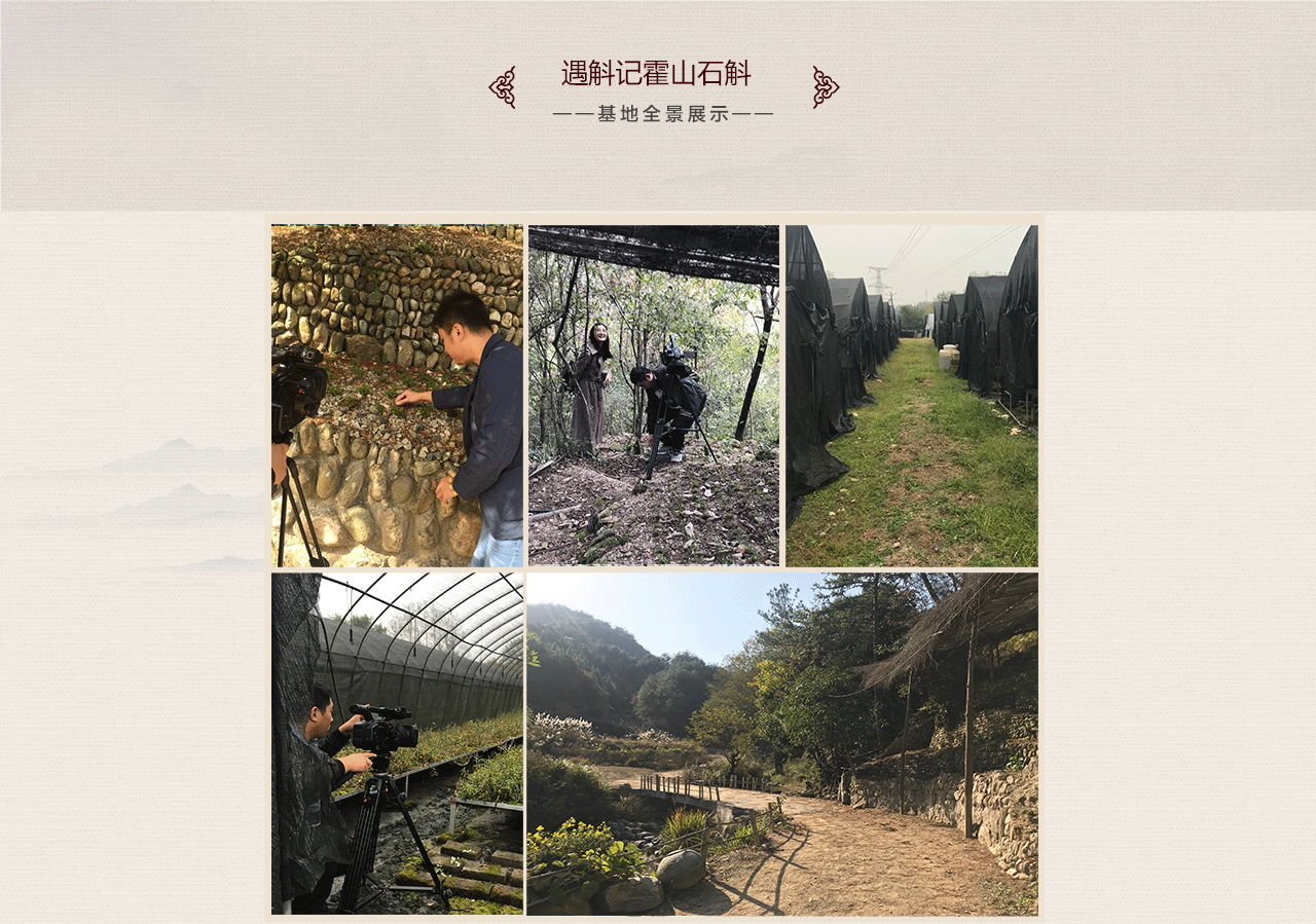 安徽省霍山縣遇斛記生物科技有限公司基地位于霍山縣太平畈鄉(xiāng)王家站村,總占地面積586畝,2018年 “探訪霍山石斛種源地” 拍攝基地,基地石斛總種植面積近500畝,全部采用林下仿野生種植?;氐靥幋笊缴钐?,自然環(huán)境優(yōu)美,除種植石斛外,還配套有休閑、茶道、民宿和餐飲等一系列服務(wù),將霍山石斛種植和休閑養(yǎng)生有機結(jié)合起來,是休閑度假的好去處。遇斛記基地以其環(huán)境的獨特性,倍受社會各界的關(guān)注,多次受邀參加省內(nèi)外舉辦的各種優(yōu)秀農(nóng)產(chǎn)品展銷會。遇斛記主要批發(fā)霍山米斛楓斗、霍山鐵皮石斛楓斗、石斛鮮條、石斛花和石斛禮盒等, 我們始終強調(diào)把利潤讓給經(jīng)銷商,公司把主要力量放在品質(zhì)和服務(wù)打造上。 遇斛記為了更好的服務(wù)全國各地的客戶,在合肥經(jīng)開區(qū)設(shè)有遇斛記體驗中心,中心配備餐飲、茶道,御廚王國平親自掌勺,將石斛養(yǎng)生和餐飲充分結(jié)合起來,歡迎全國各地的朋友過來品嘗。