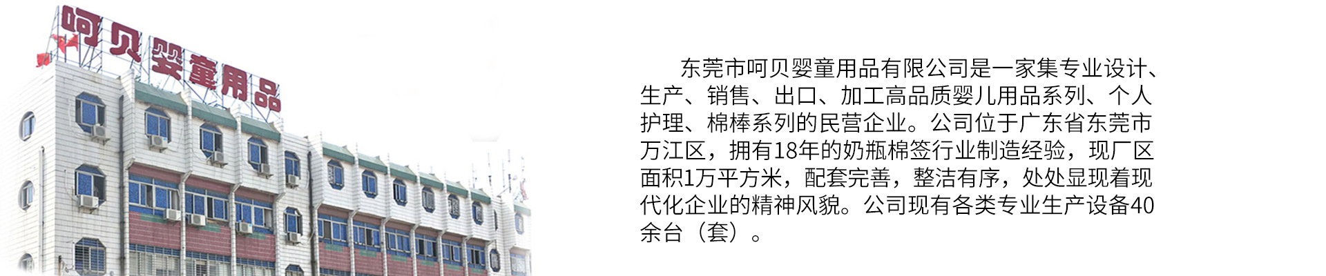 東莞市呵貝嬰童用品有限公司成立于1997年,坐立于東莞市萬江區(qū)大汾第一工業(yè)區(qū),是一家從事嬰童用品研發(fā)、生產(chǎn)、銷售于一體的企業(yè)。 公司秉承“以人為本??堅持誠信??力行變革??注重業(yè)績”為核心價值,一切以客戶需求為中心,以股東和員工利益為基礎(chǔ),以可持續(xù)發(fā)展為目的,貫徹“勤儉、高效、創(chuàng)新、超越”的企業(yè)精神,希望通過專業(yè)的技術(shù)和科學(xué)的管理,全始至終做自己,全神貫注做產(chǎn)品,全心全意為客戶創(chuàng)造價值、為員工謀福利,致力于自身綜合實力的提高,推動嬰童行業(yè)的健康發(fā)展。 公司擁有科學(xué)的研發(fā)團隊,具有十多年的技術(shù)研發(fā)經(jīng)驗,堅定不移地立足科技創(chuàng)新,潛心產(chǎn)品技術(shù)研發(fā),注重產(chǎn)品品質(zhì)與誠信服務(wù)。匯聚了一批經(jīng)驗豐富的管理隊伍,擁有專業(yè)高效的銷售隊伍,從產(chǎn)品開發(fā)到售后服務(wù)形成了一整套成熟的管理模式,能夠滿足用戶各方面的要求,產(chǎn)品遠銷歐美東南亞多個地區(qū)。得到用戶的一致好評。 主要經(jīng)營的產(chǎn)品:PP\PC奶瓶、水杯、奶嘴、奶粉
