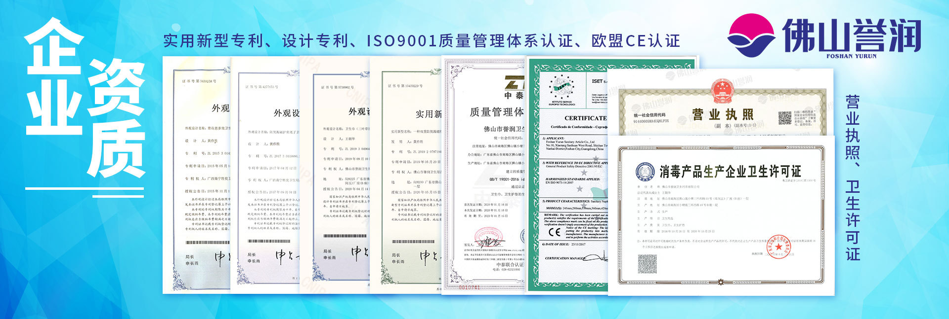 佛山市譽潤衛(wèi)生用品有限公司成立于2015年,坐落于廣東省佛山市南海區(qū)獅山鎮(zhèn),占地面積1萬平方米,是一家集研發(fā)、生產(chǎn)、加工及銷售于一體的新型母嬰用品企業(yè),以負離子衛(wèi)生巾生產(chǎn)加工為主要業(yè)務,并提供產(chǎn)品包裝設計、包材采購、成品檢測等一站式貼牌服務。 公司具備完善的ISO9001質(zhì)量管理體系并獲得多項資質(zhì)認證,包括CE歐盟認證、外觀設計專利證書,且擁有進出口經(jīng)營權(quán)。我司擁有全自動高速運轉(zhuǎn)生產(chǎn)線6條,月產(chǎn)量達2000萬片衛(wèi)生巾;嚴格執(zhí)行高消毒無塵車間,衛(wèi)生安全有保證;產(chǎn)品生產(chǎn)一次成型,使用自動打包機封包,全程不經(jīng)人手觸摸;配備污點檢測儀,自動剔除不良品,出廠前經(jīng)兩次嚴格質(zhì)檢;配套產(chǎn)品檢驗室,有專業(yè)的質(zhì)檢員負責檢測產(chǎn)品指標。 佛山譽潤服務客戶遍布海內(nèi)外,貼牌加工及品牌產(chǎn)品覆蓋實體營銷、商超、直銷、網(wǎng)上商城等銷售渠道及模式。 譽潤,以誠為本,以信至上。