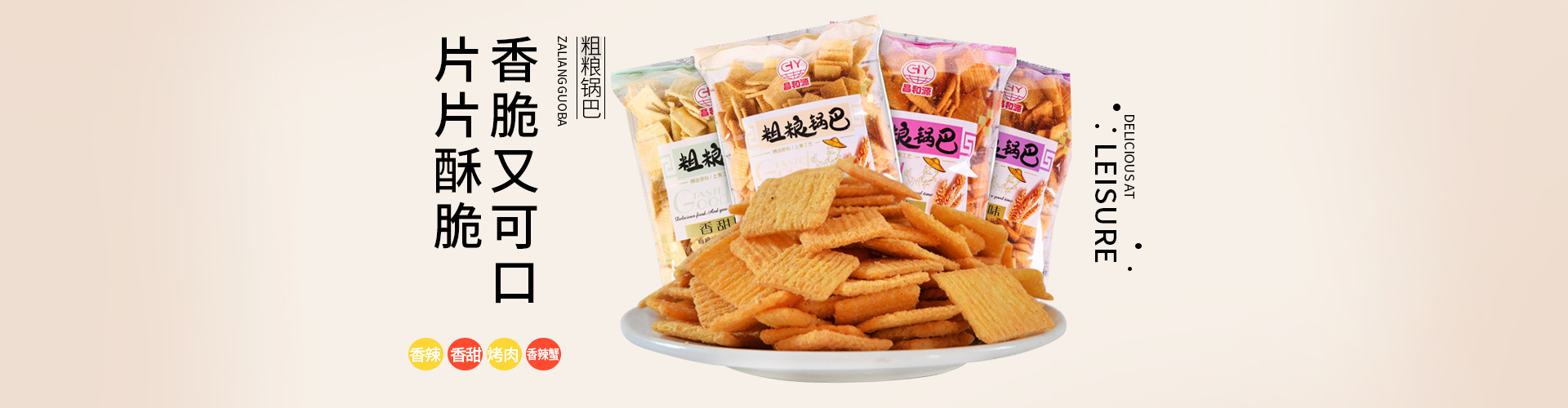 主營休閑食品鍋巴,貓耳朵,薯片等