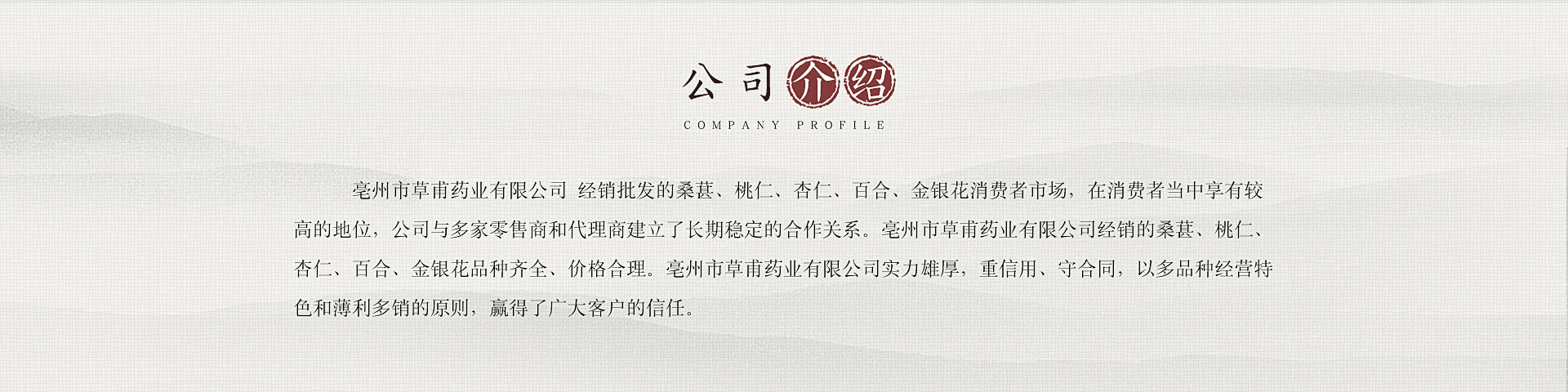 亳州市草甫藥業(yè)有限公司 經(jīng)銷批發(fā)的桑葚、桃仁、杏仁、百合、金銀花消費者市場,在消費者當中享有較高的地位,公司與多家零售商和代理商建立了長期穩(wěn)定的合作關(guān)系。亳州市草甫藥業(yè)有限公司經(jīng)銷的桑葚、桃仁、杏仁、百合、金銀花品種齊全、價格合理。亳州市草甫藥業(yè)有限公司實力雄厚,重信用、守合同,以多品種經(jīng)營特色和薄利多銷的原則,贏得了廣大客戶的信任。