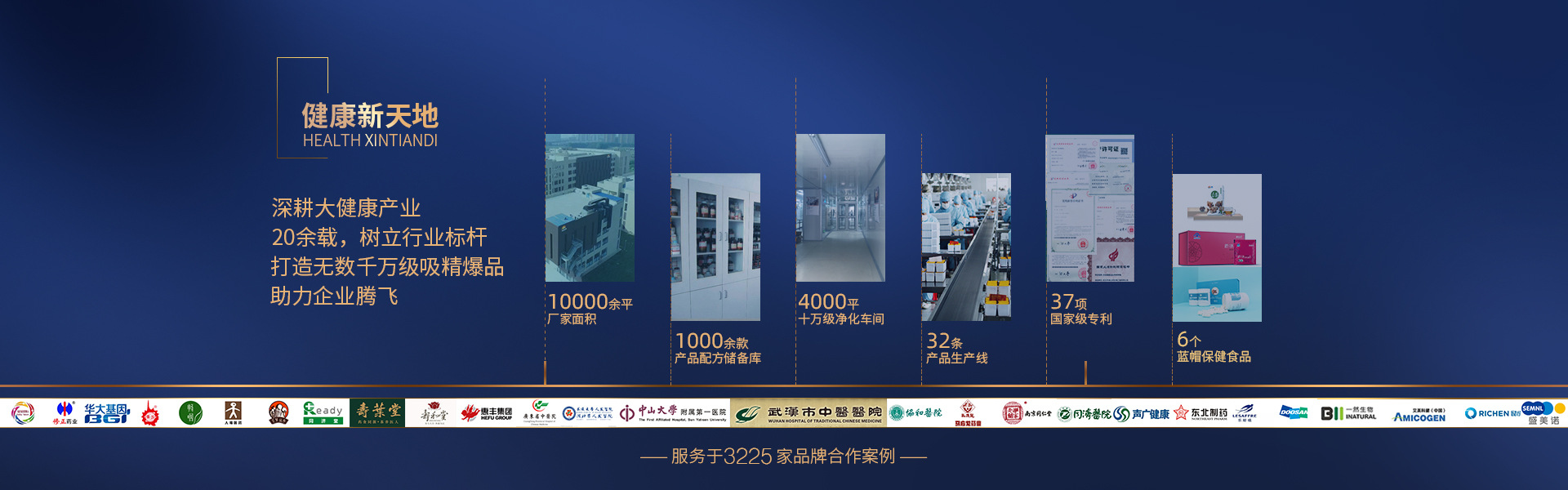武漢健康新天地科技有限公司是一家集醫(yī)療器械、保健品、食品研發(fā)、生產(chǎn)于一體的高科技企業(yè),專業(yè)從事醫(yī)療器械、保健食品的研發(fā)、生產(chǎn)、銷售,擁有現(xiàn)代化的研發(fā)中心、產(chǎn)品中心,現(xiàn)有 SC 食品 98 個,藍(lán)帽保健食品 6個,國家級專利及相關(guān)獎項 37 例。 健康新天地從事保健品、食品研發(fā)、生產(chǎn)、銷售20余年,在OEM、ODM領(lǐng)域積累了身后的經(jīng)驗,擁有GMP認(rèn)證和QS認(rèn)證的6000平方米10萬級標(biāo)準(zhǔn)廠房,擁有從德國引進(jìn)的具國際一流水平的科研儀器、生產(chǎn)設(shè)備、全自動包裝流水線和質(zhì)量控制檢驗儀器。嚴(yán)格按照國家GMP標(biāo)準(zhǔn),SC生產(chǎn)許可證生產(chǎn),生產(chǎn)規(guī)模累計產(chǎn)量達(dá)200億。 公司承接袋泡茶、膠囊、貼劑、固體飲料、壓片糖果等健康產(chǎn)品OEM/ODM代加工業(yè)務(wù),價格公道,保證質(zhì)量。從生產(chǎn)到交貨全程一對一專人跟進(jìn),20年來公司的OEM代加工已經(jīng)日益成為了行業(yè)標(biāo)準(zhǔn)定制企業(yè)。